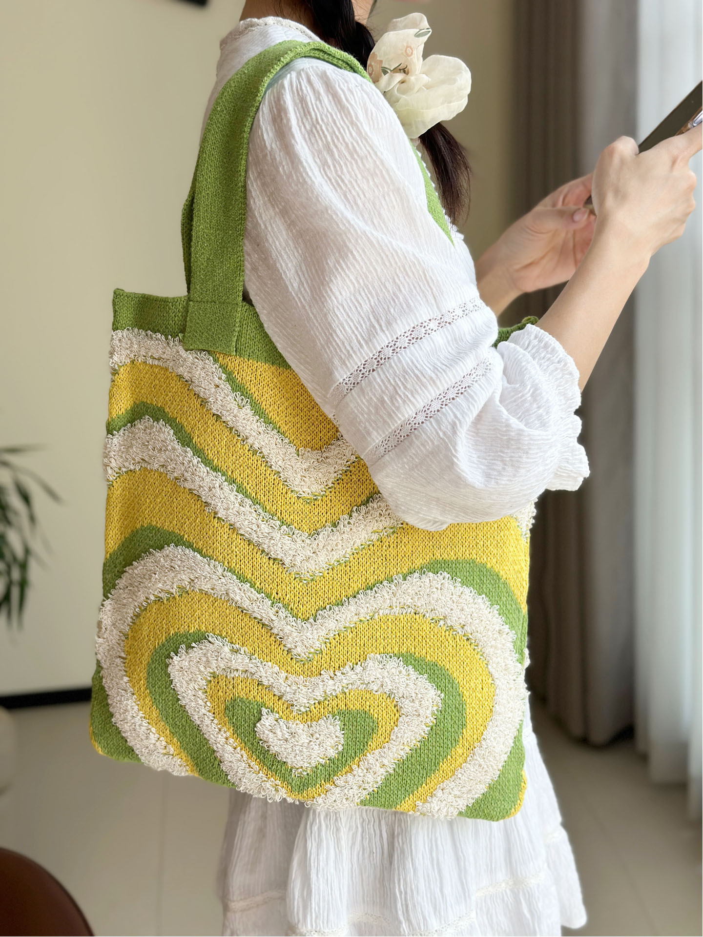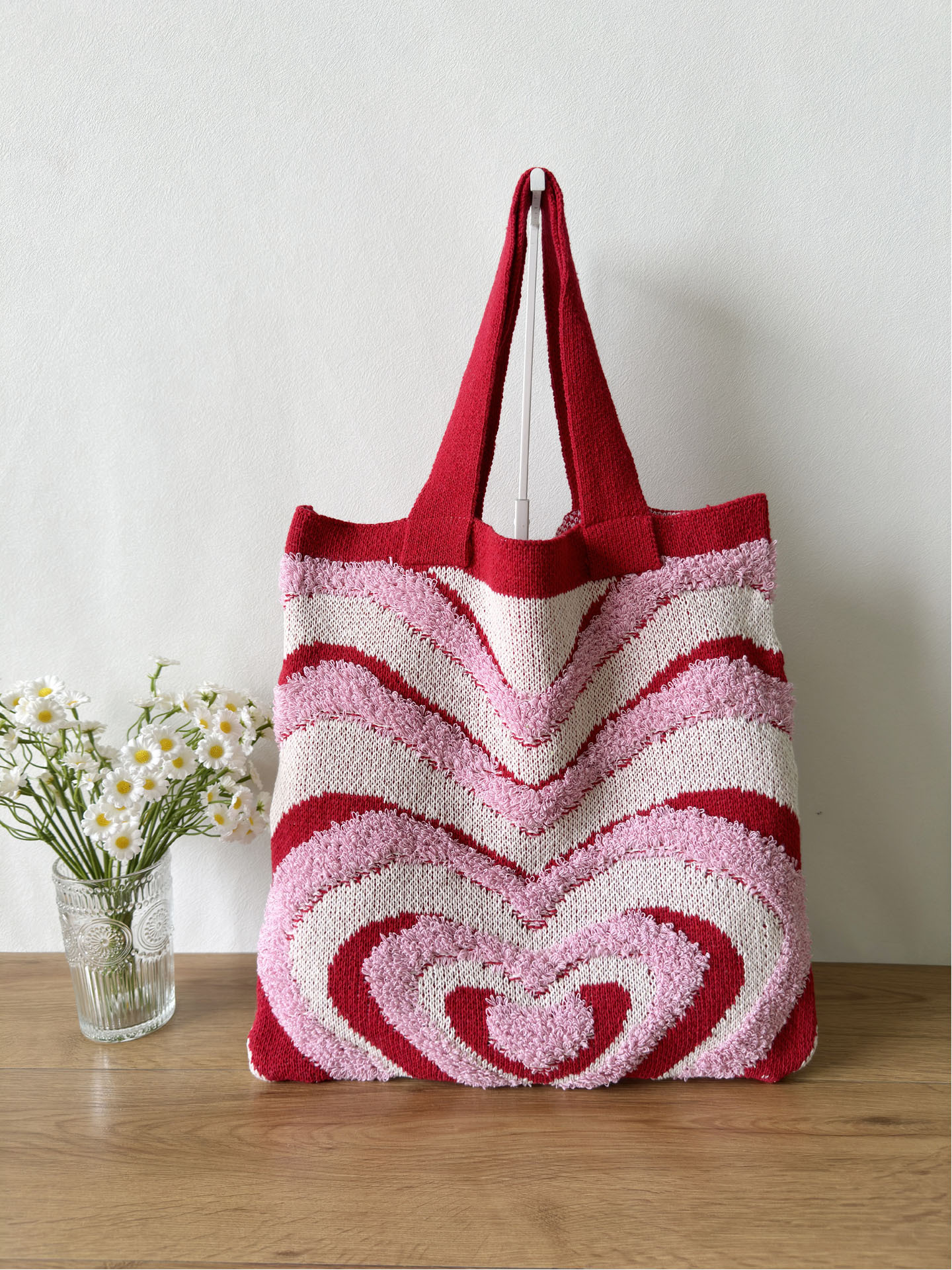 2024 New Cross-border Amazon Knitted Bag Instagram Love Pattern Large Capacity Knitted Tote Bag for Women