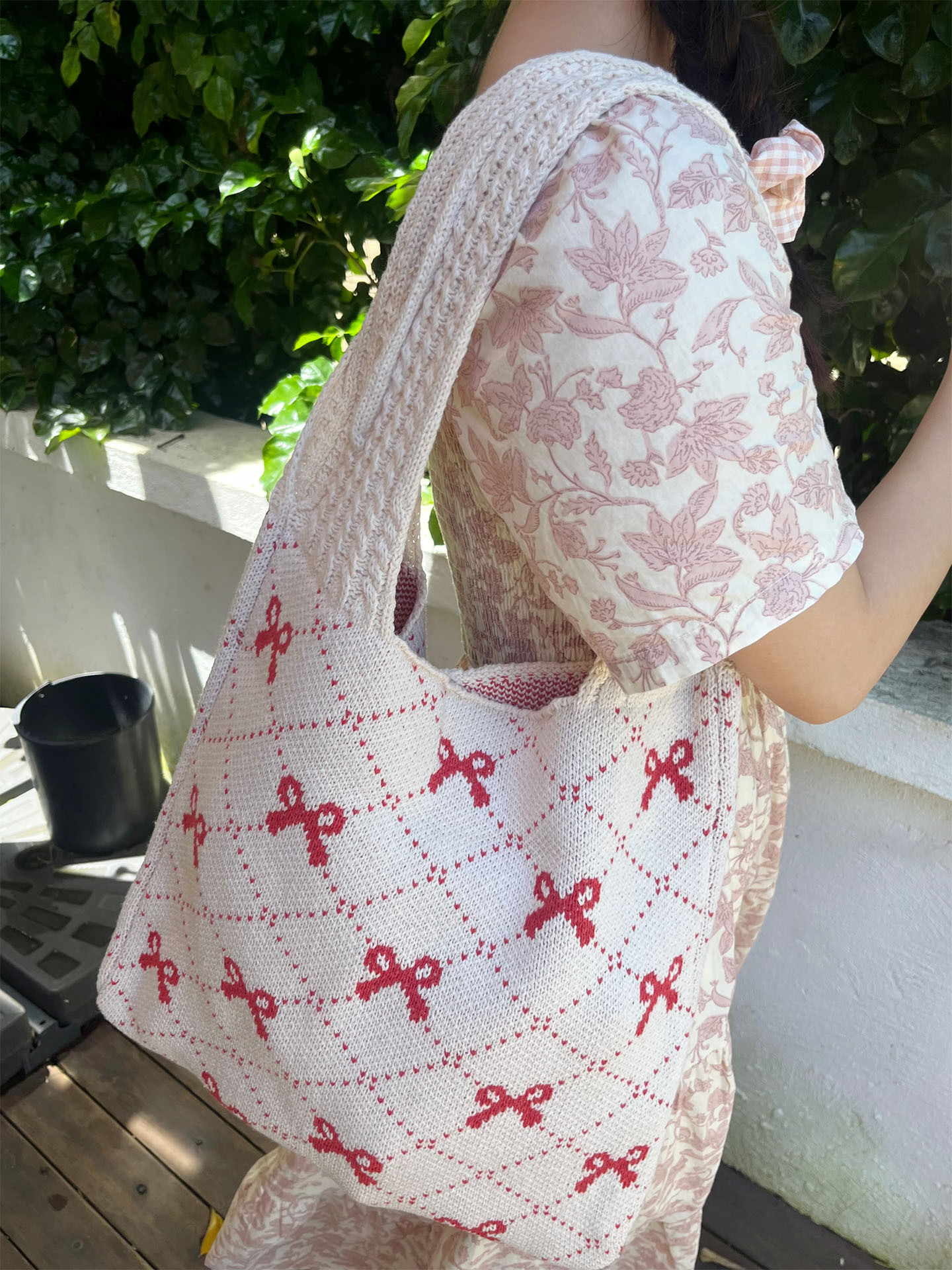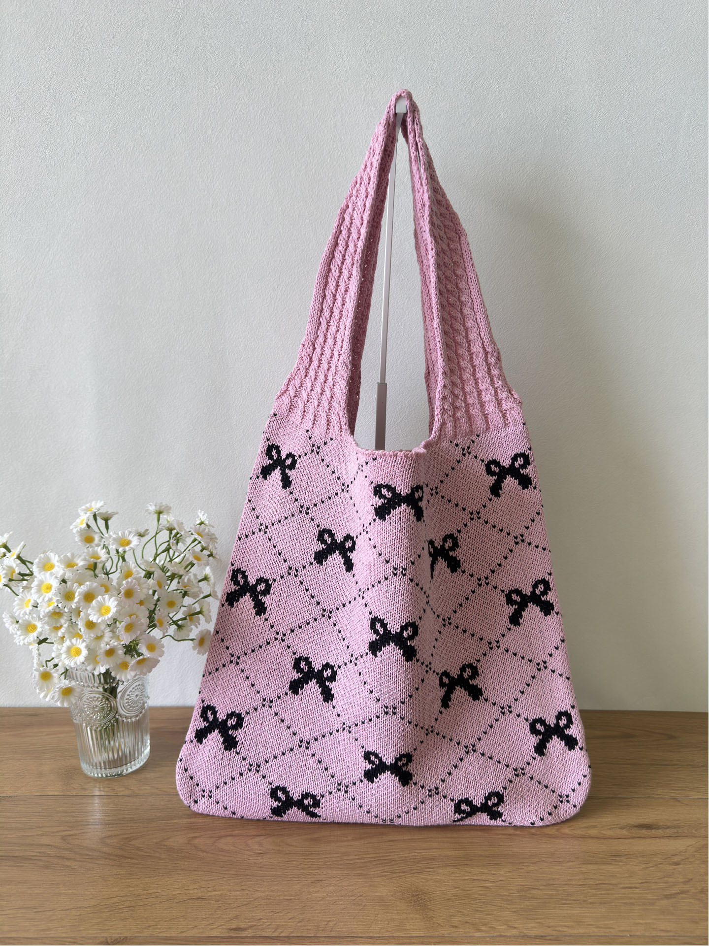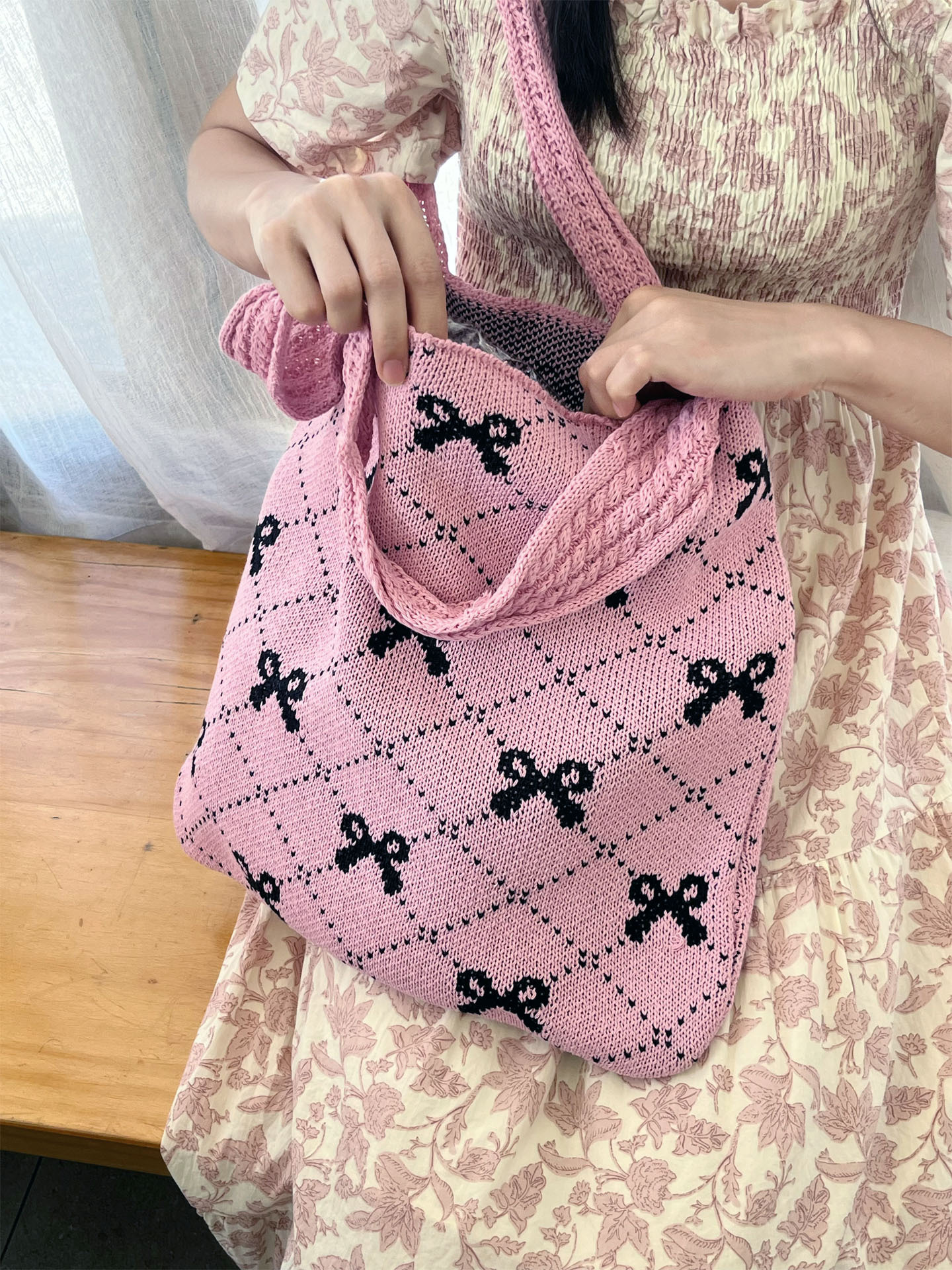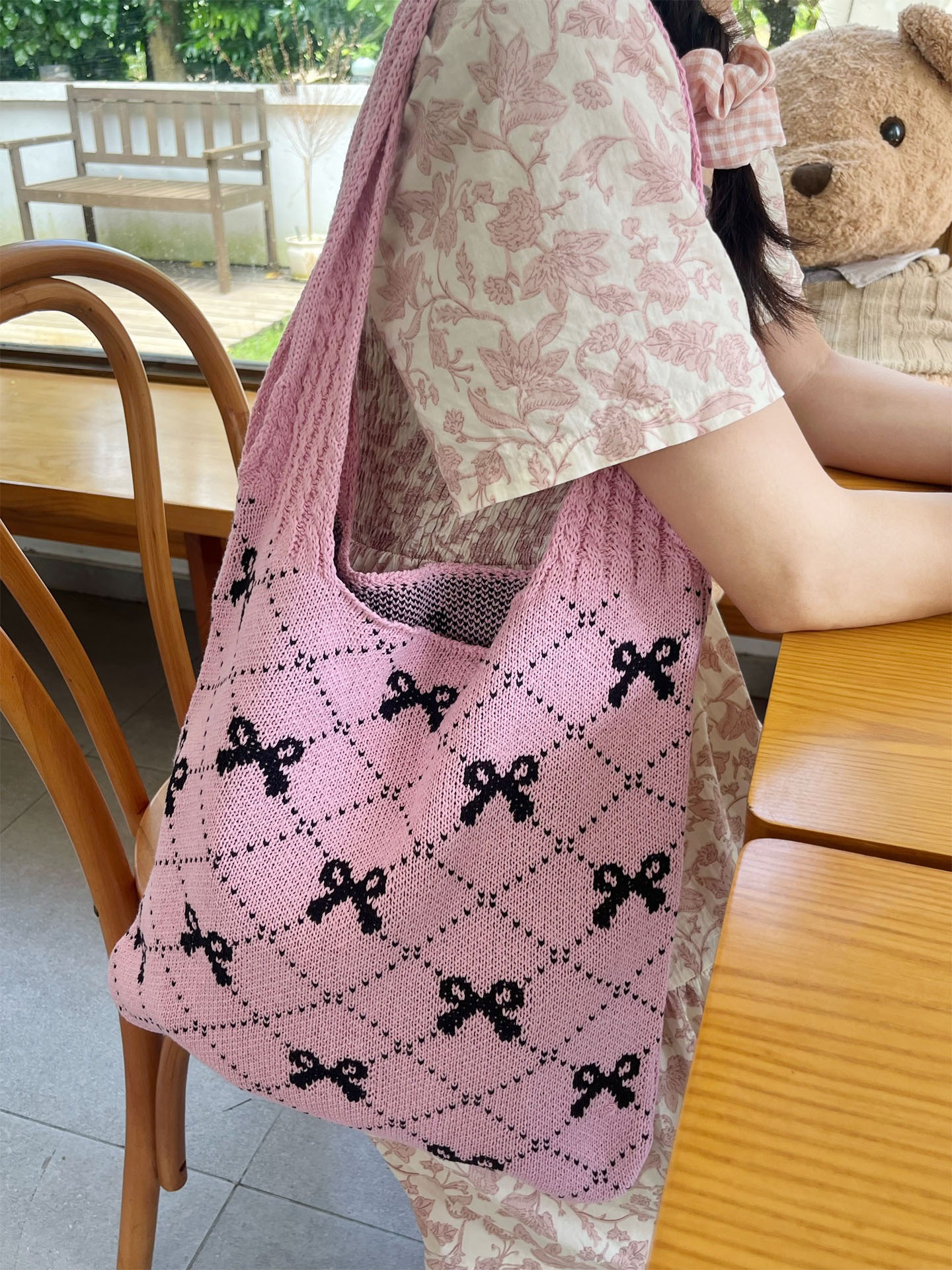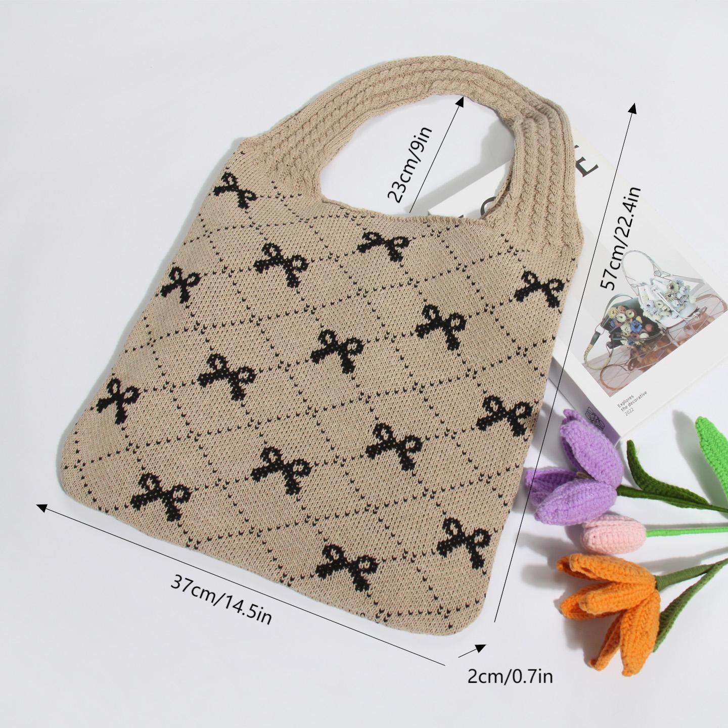Ins New Cross-border Amazon Special Knitted Shoulder Bag All-match Bow Pattern Tote Bag for Women