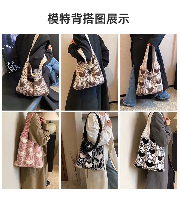 2024 New Hand Knitted Bag Niche Design Knitted Tote Bag Girl's Love Texted Crossbody Bag for Women