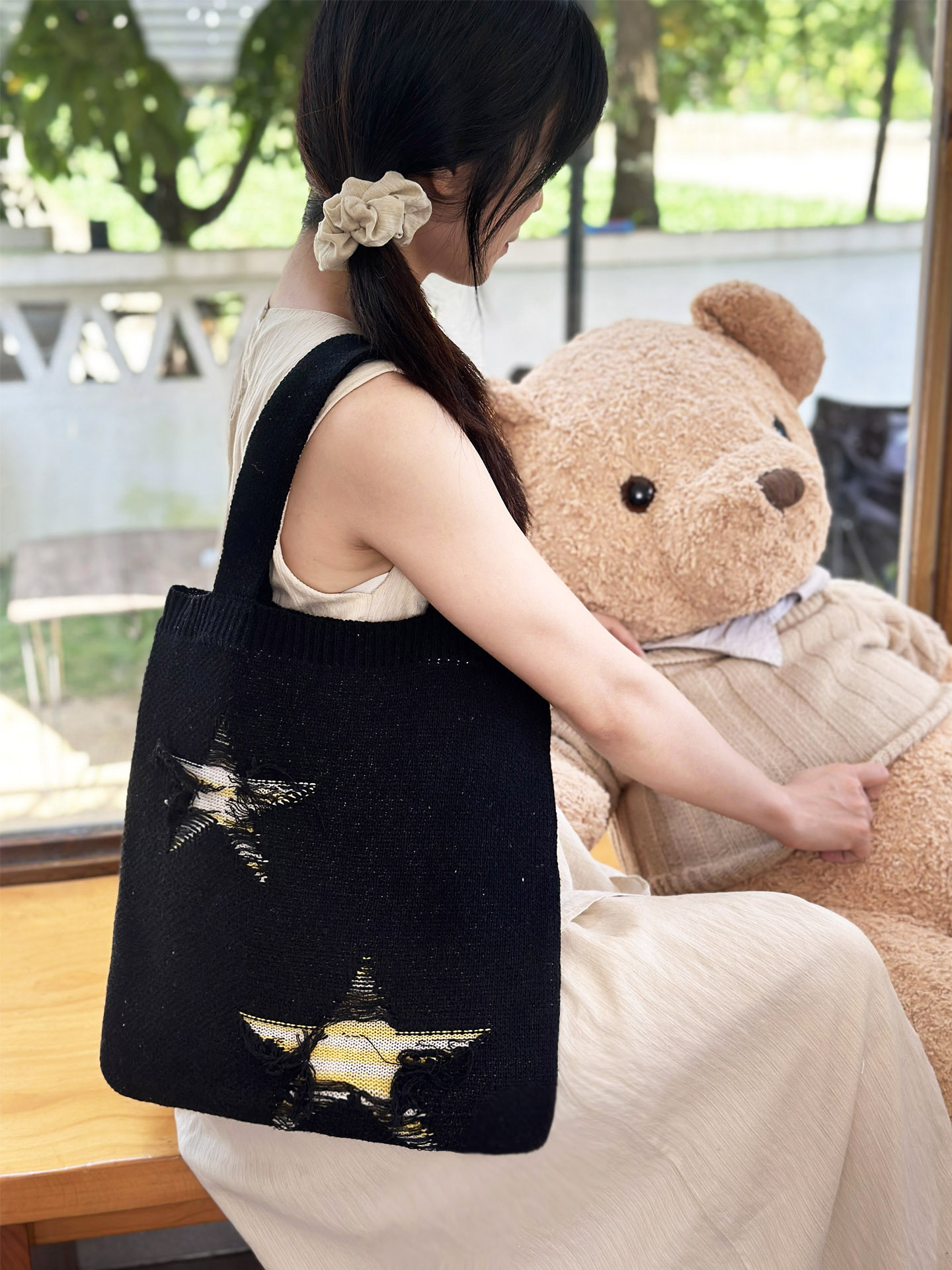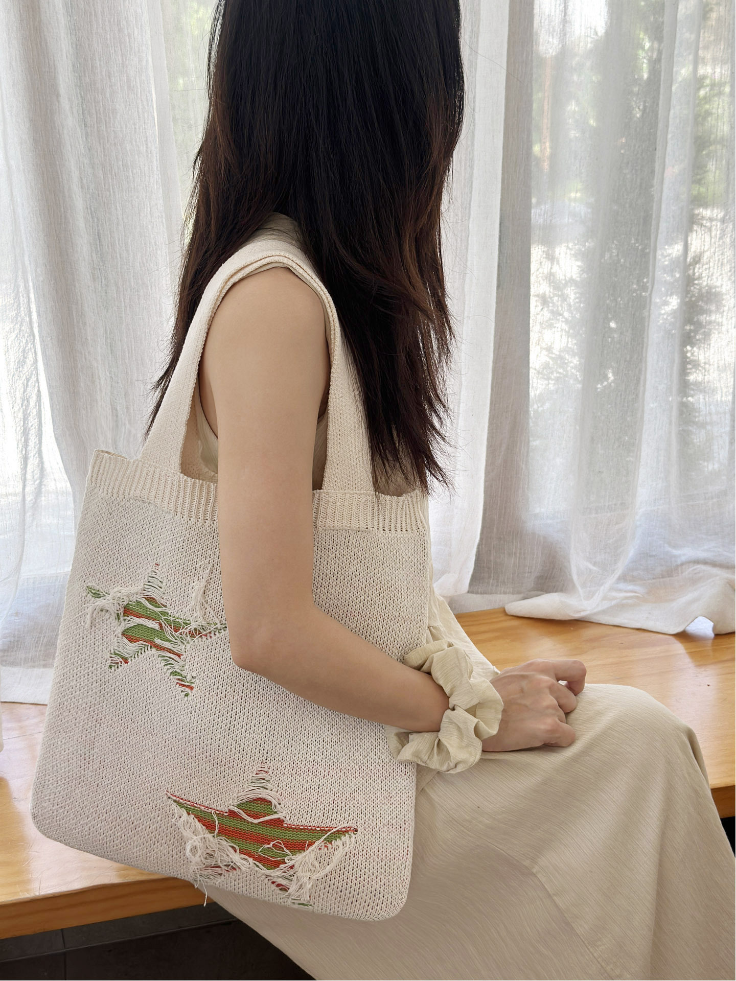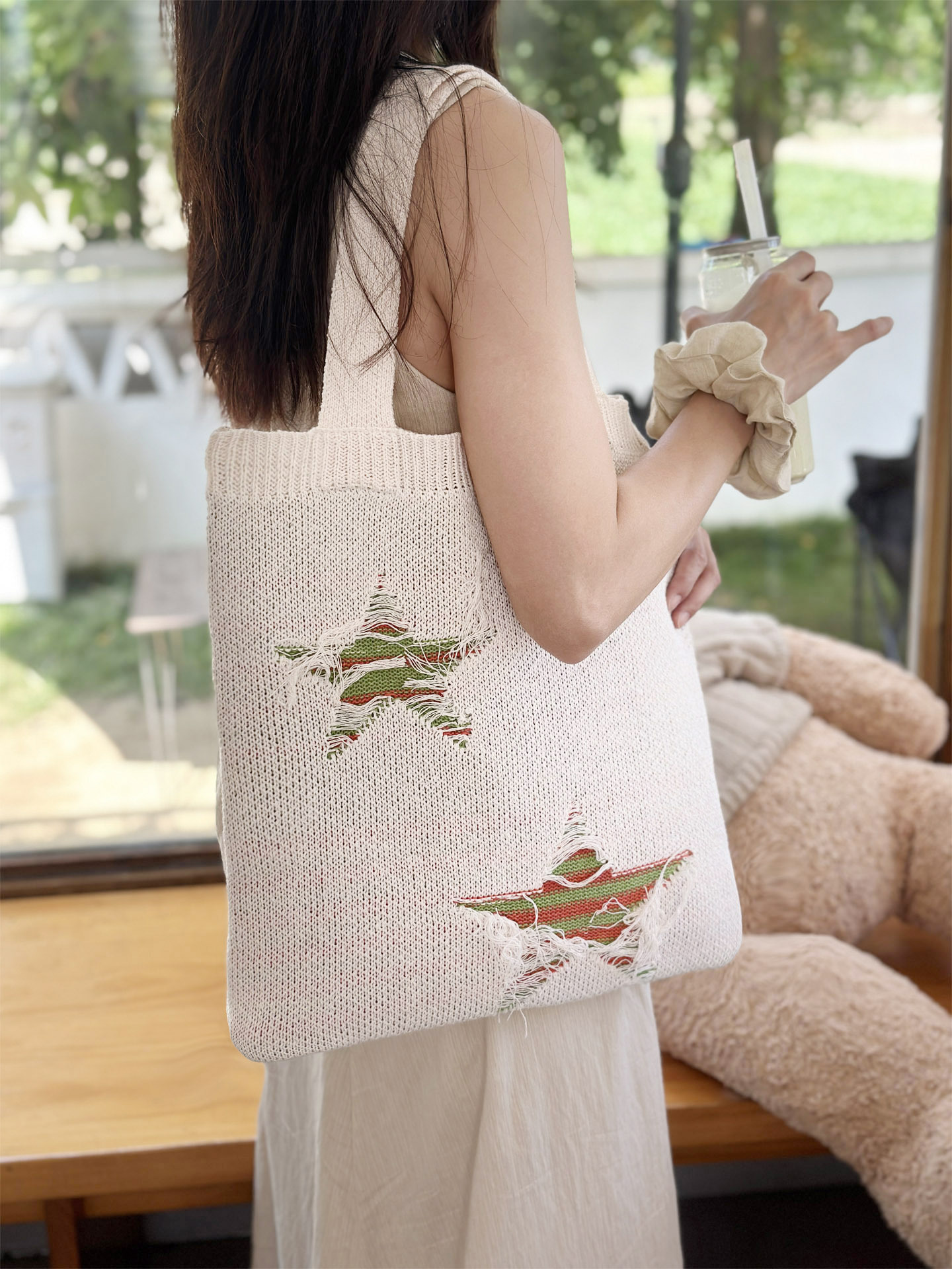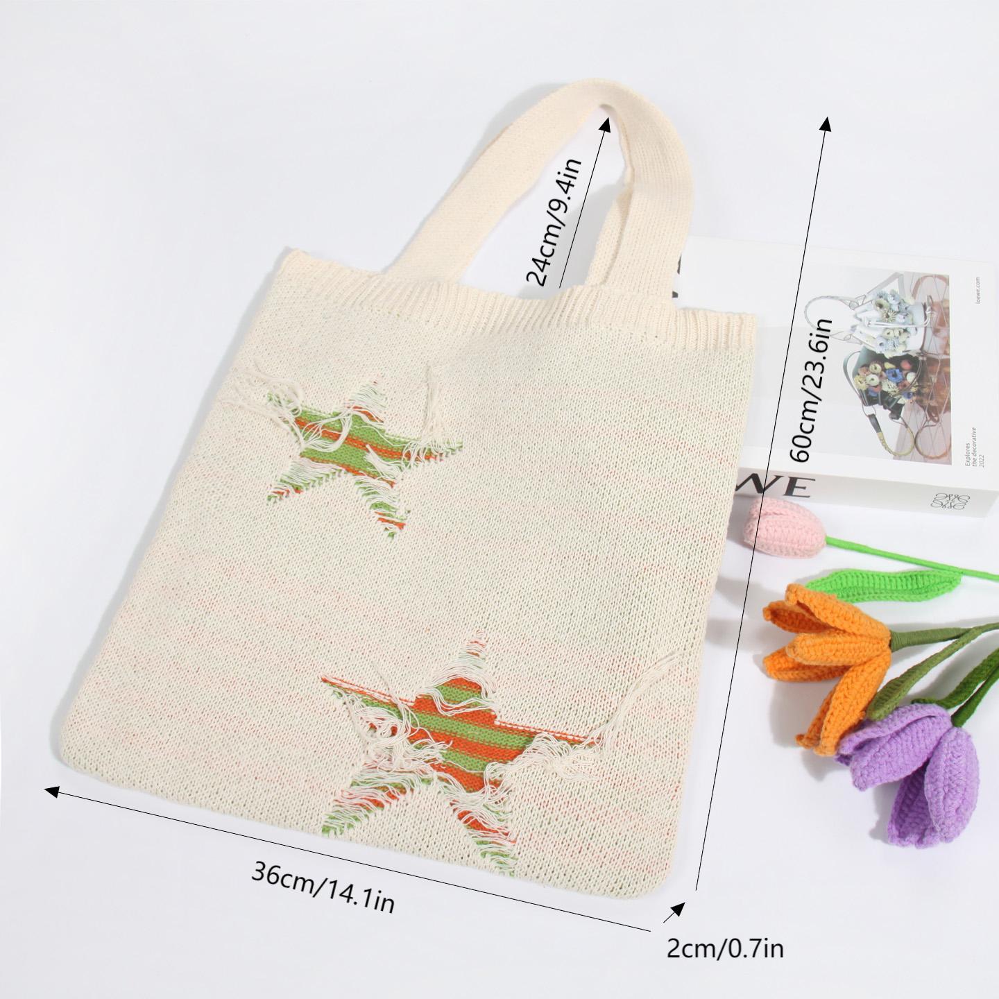 2024 cross-border foreign trade new knitted bag woven bag large capacity tote bag love tassel pattern shoulder bag