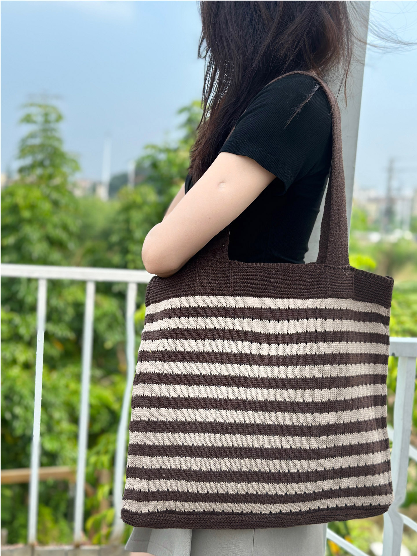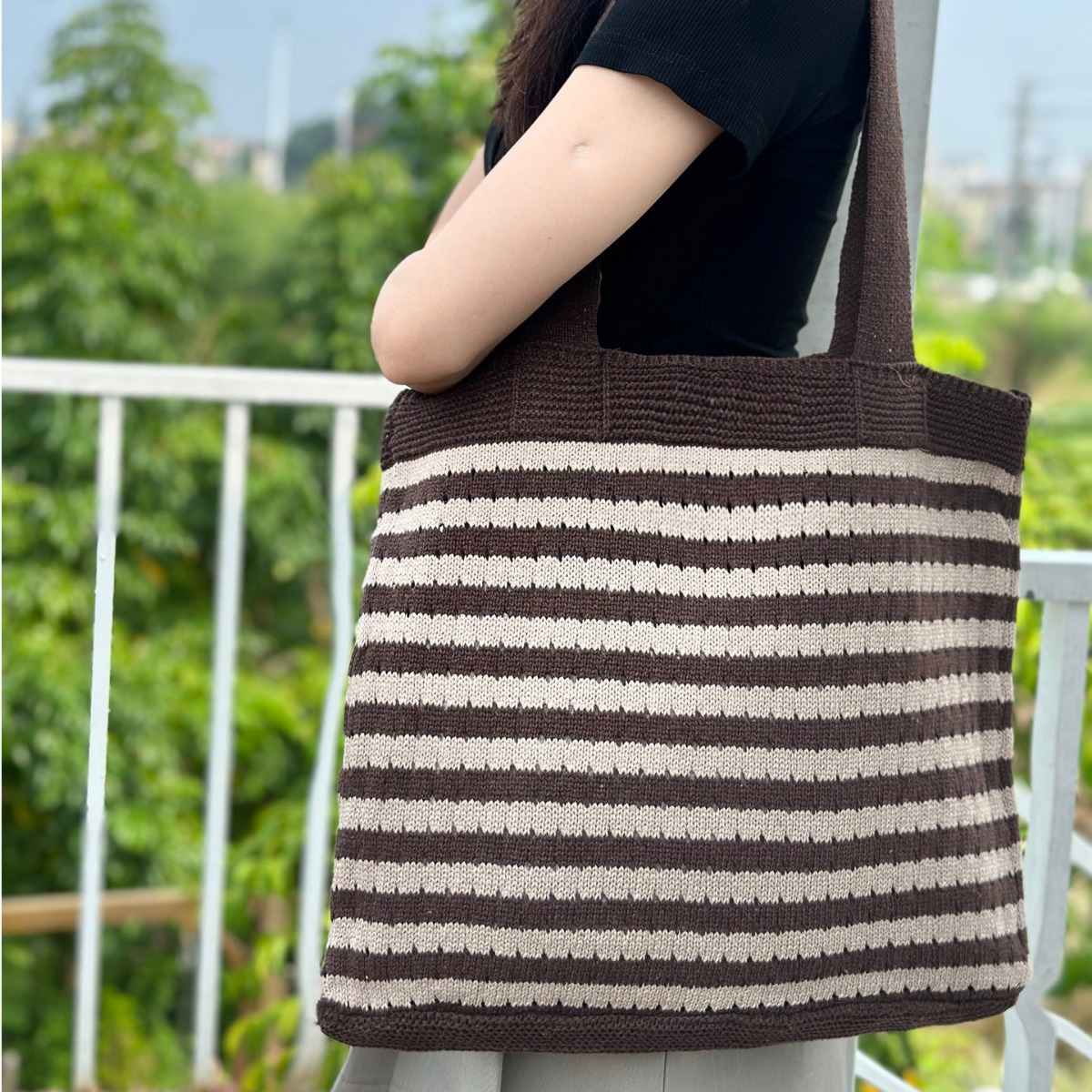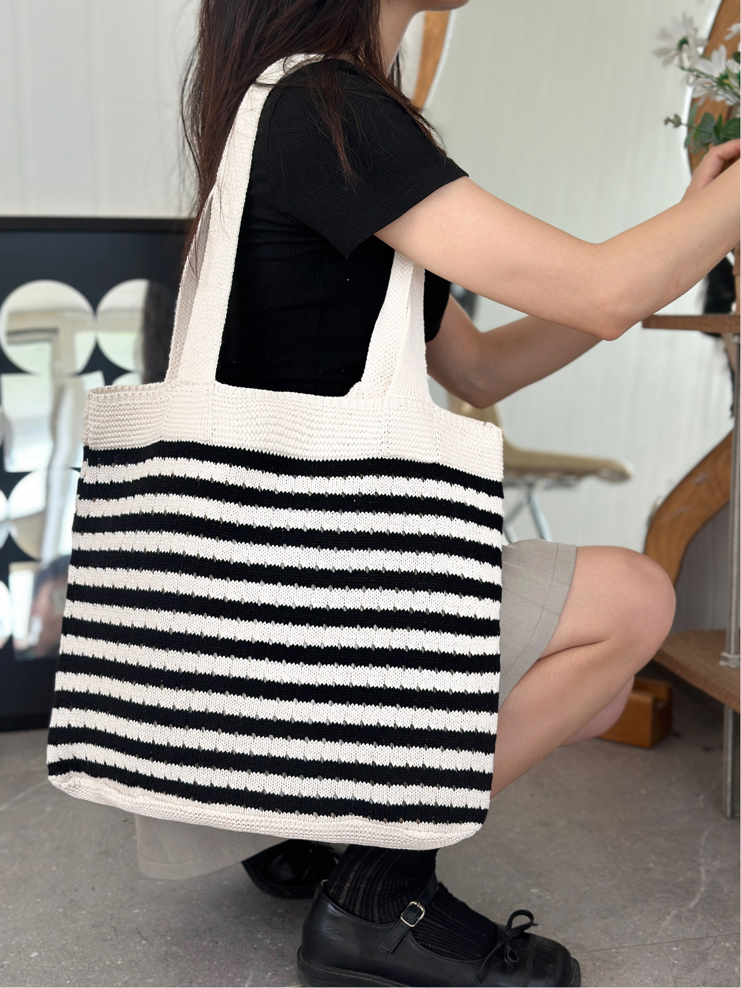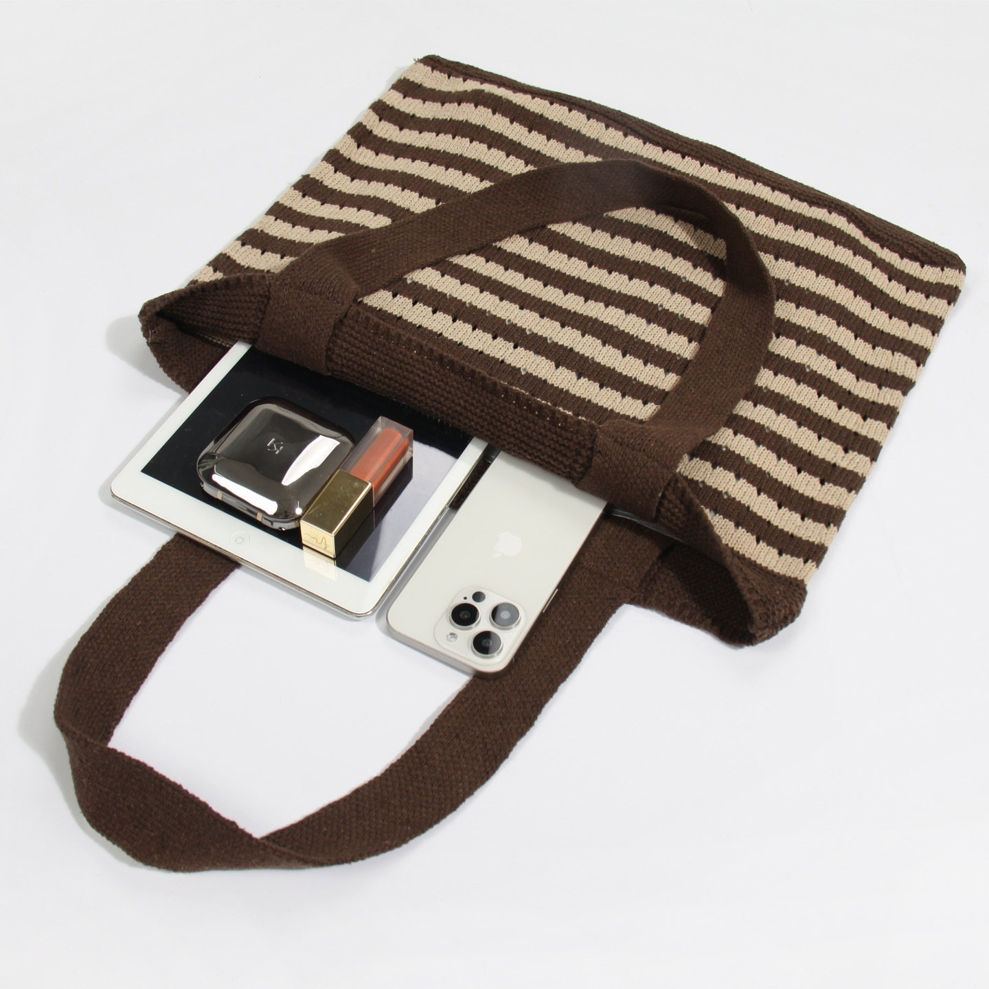 Cross-border Exclusive New Large Capacity Striped Tote Bag Casual All-match Women's Knitted Bag Niche Shoulder Bag for Women