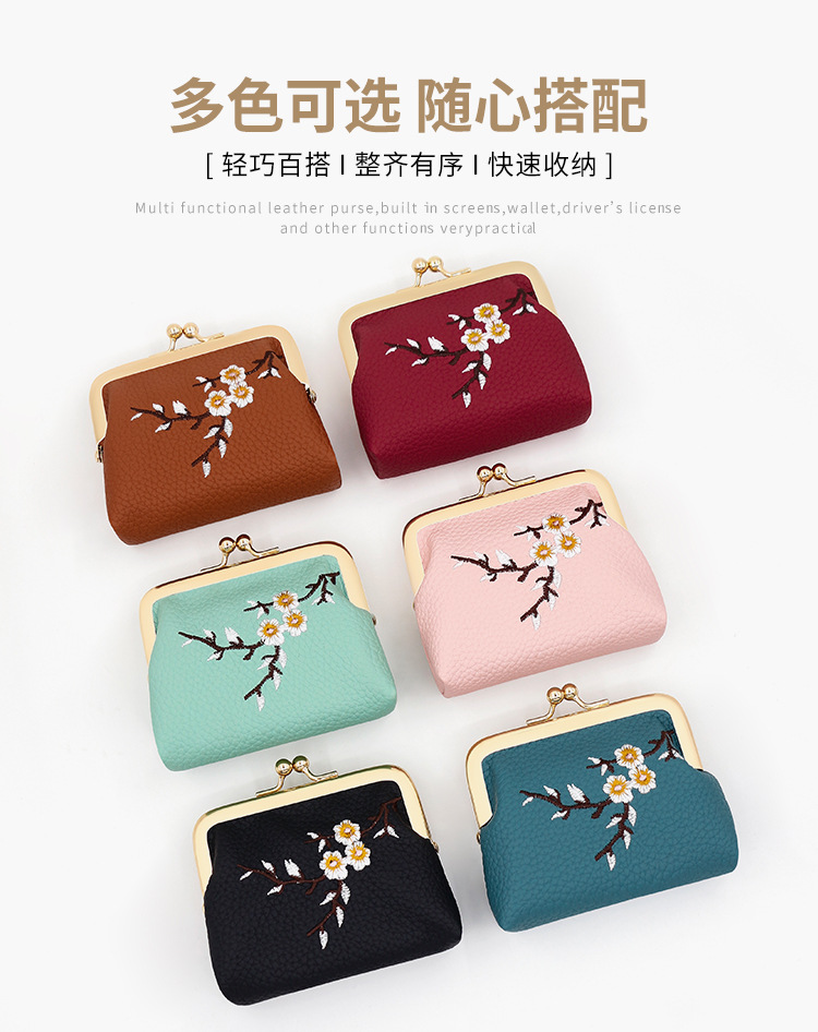 New Mouth Gold Bag Portable Mini Wallet ins Women's Hand Bag Embroidered Student Change Broken Silver Bag Wholesale