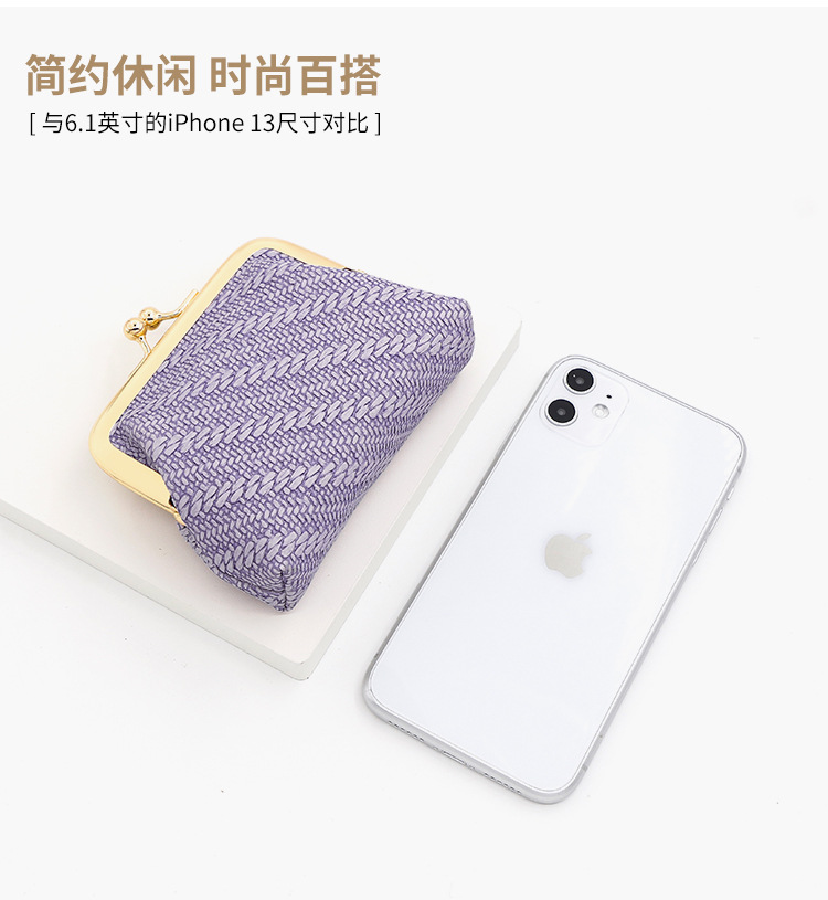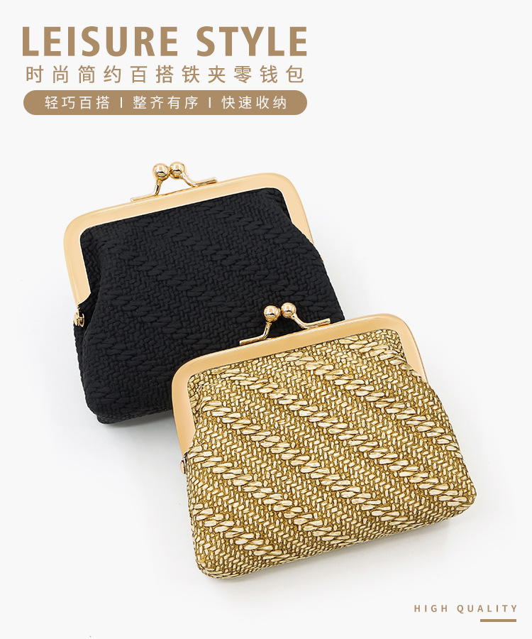 Portable Knitted Change Card Bag Clutch Bag Retro Multi-Color Multi-Function Iron Frame Storage Clip Bag Earphone Bag