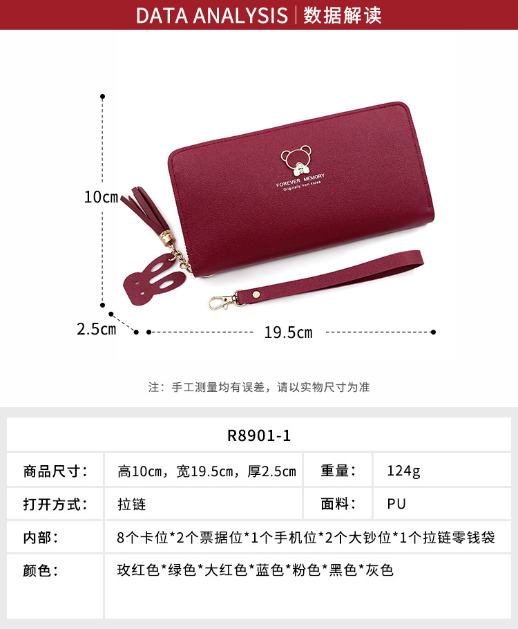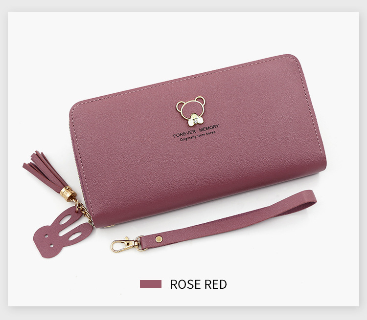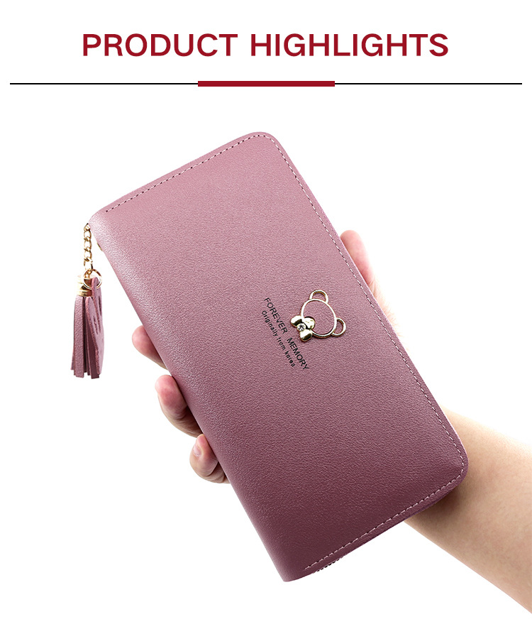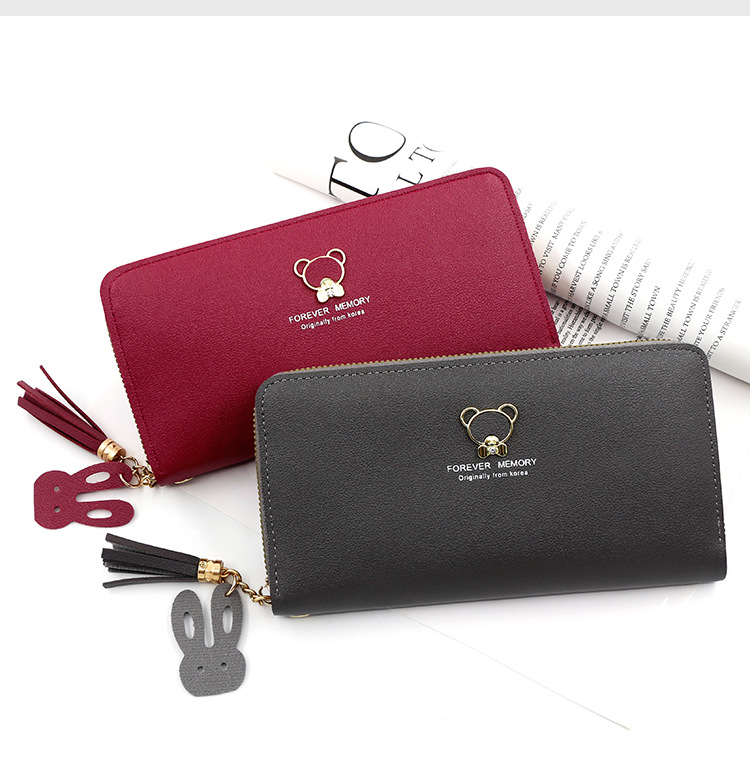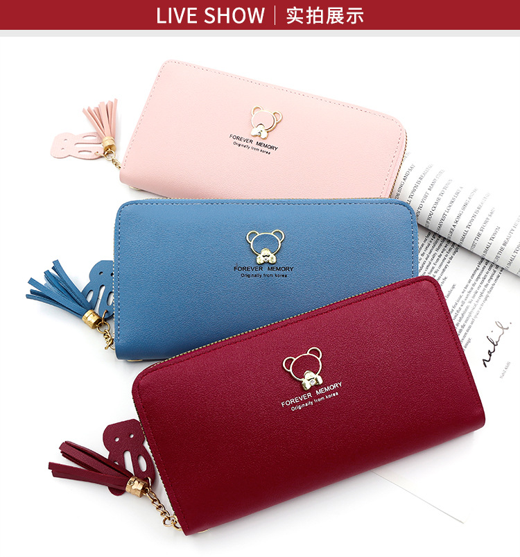 New ladies simple bear long wallet zipper bag clutch single pull mobile phone bag coin purse factory wholesale