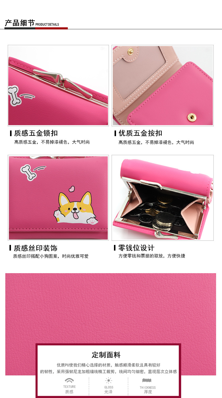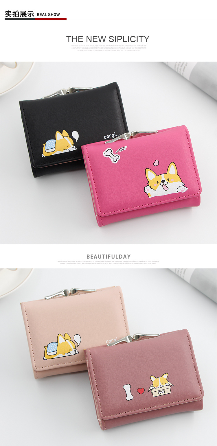 New ladies wallet iron clip three fold short bag cute cartoon ladies hand bag coin coin purse card bag wholesale