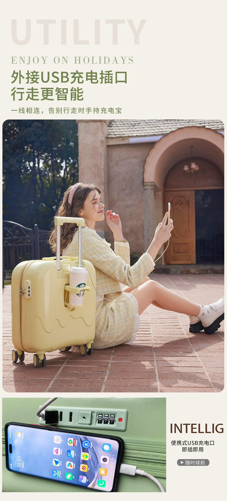New lightweight 18-inch luggage case women's multi-function USB interface boarding case universal wheel short-distance password trolley case