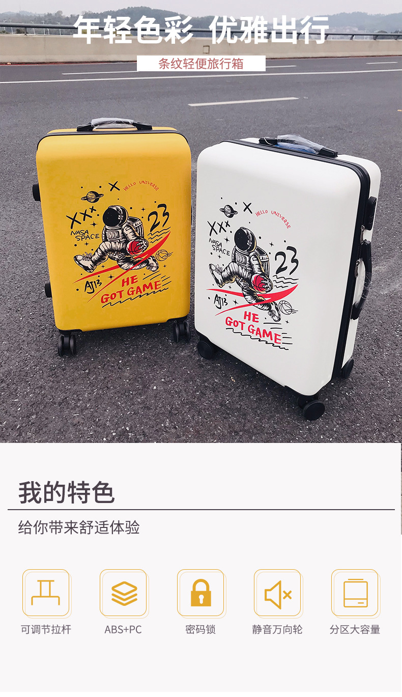 Fashion Line Printed Plum Box Male 24 Inch NASA Astronaut Pattern Trolley Case 20 Inch Universal Mute Wheel Boarning Box