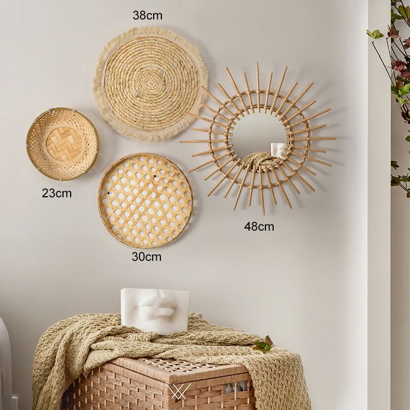 Bohemian Grass Rattan Woven Wall Decoration Pendant Homestay Living Room Room Round Wall Hanging Wall Decoration