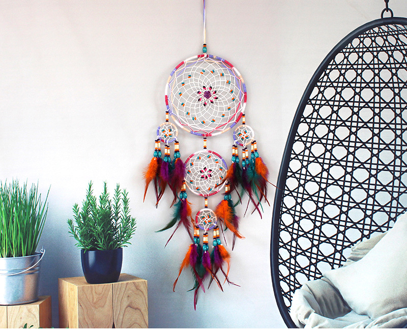 Ins Colorful Five Rings Dream Catcher Creative Wind Bell Pendant Home Interior Background Decorations Students Birthday Gift