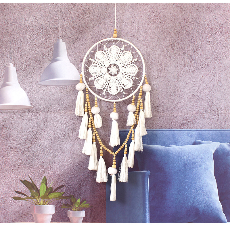 White Tassel Creative Crochet Dream Catcher Indoor Hanging Hanging Wall Decorations Pendant Students Birthday Gift