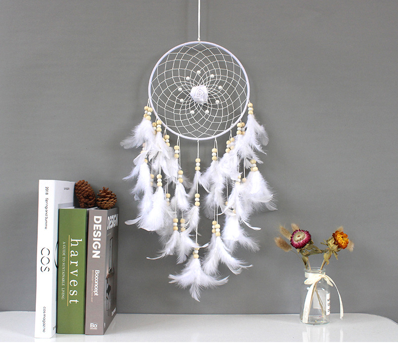 White Rose Dream Catcher Wedding Decoration Feather Pendant Wedding Holiday Supplies Home Decoration Crafts Hanging Ornaments