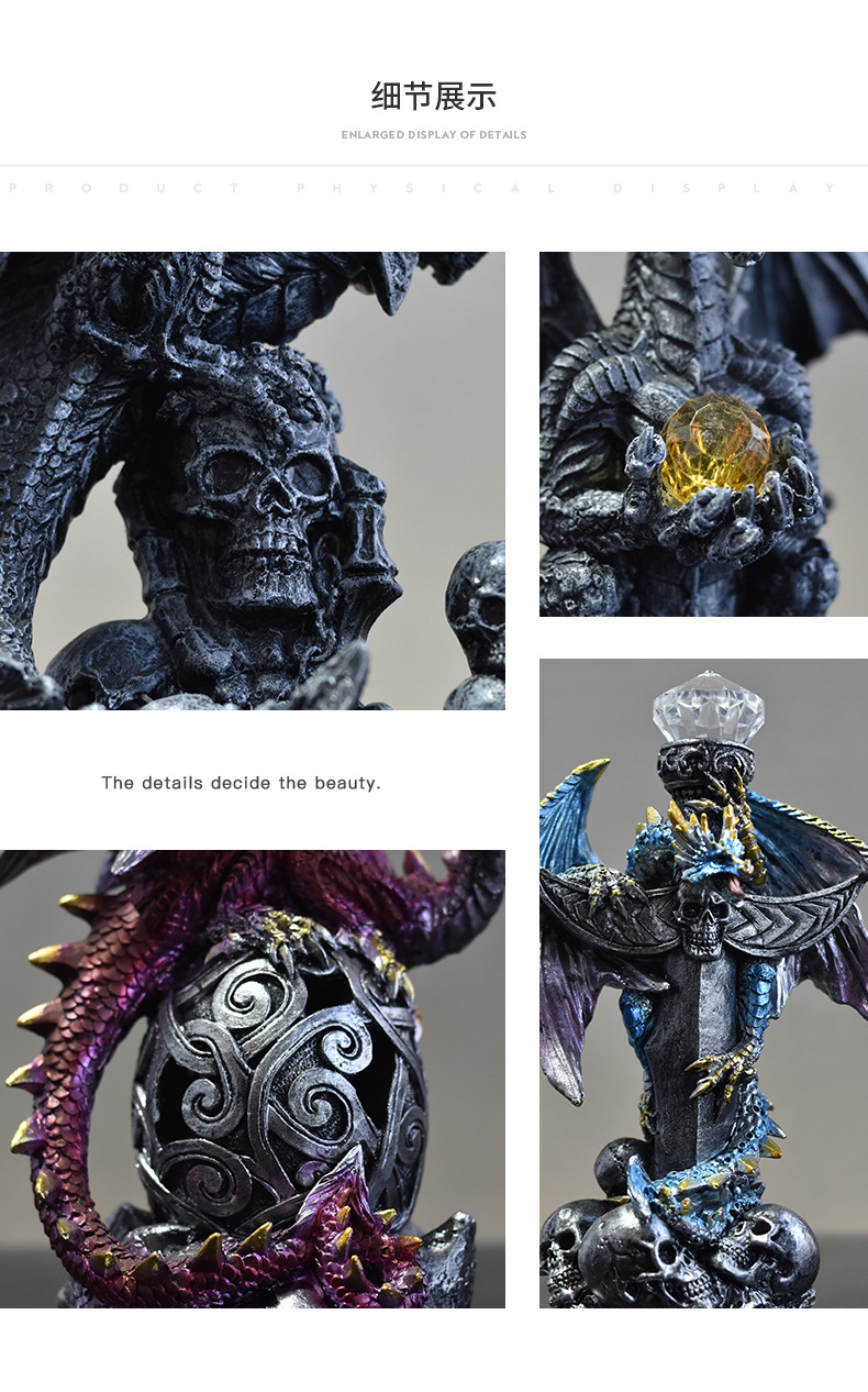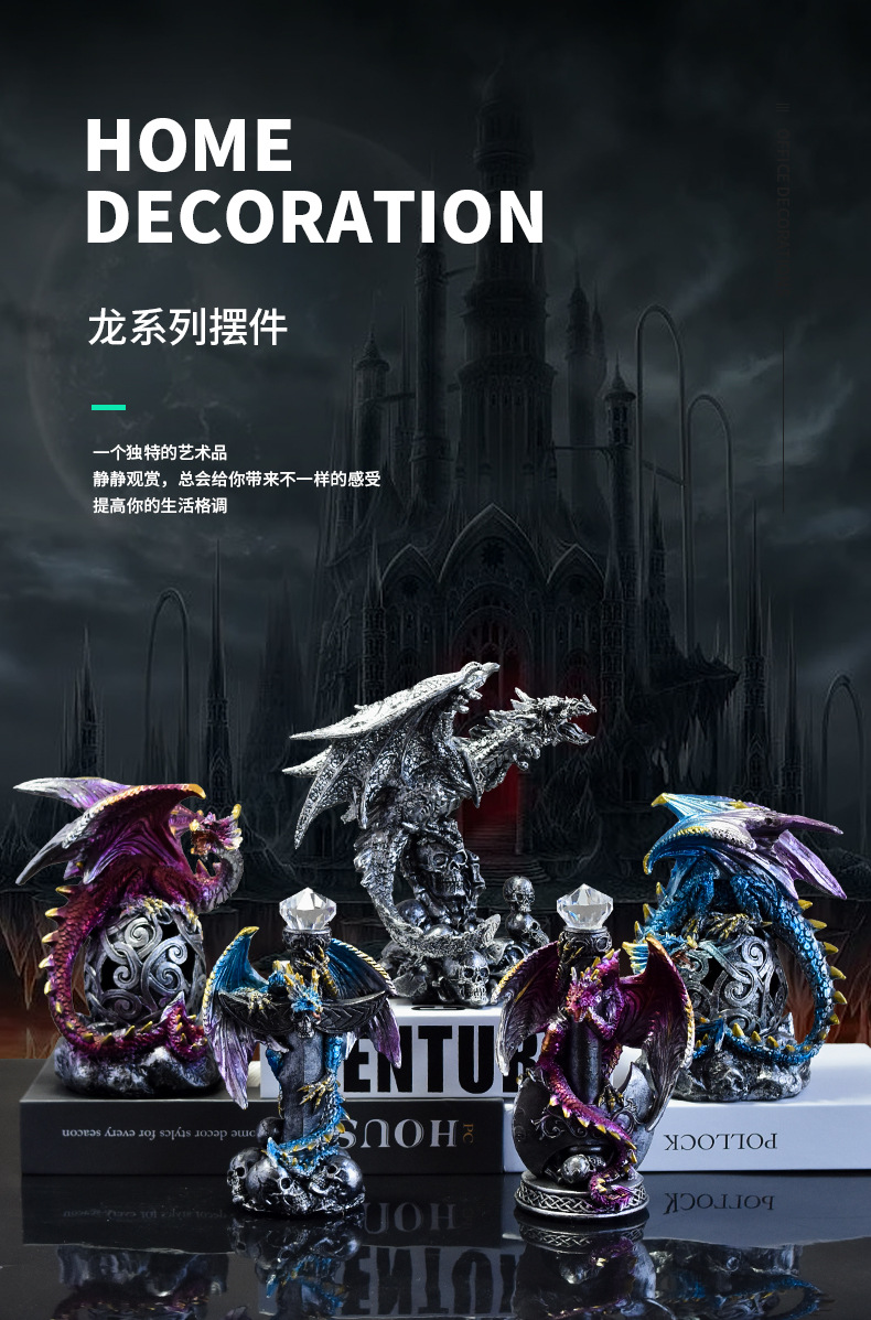Cross-border New Creative Dragon Resin Crafts Halloween Gothic Style Home Myth Collection Decorative Ornaments