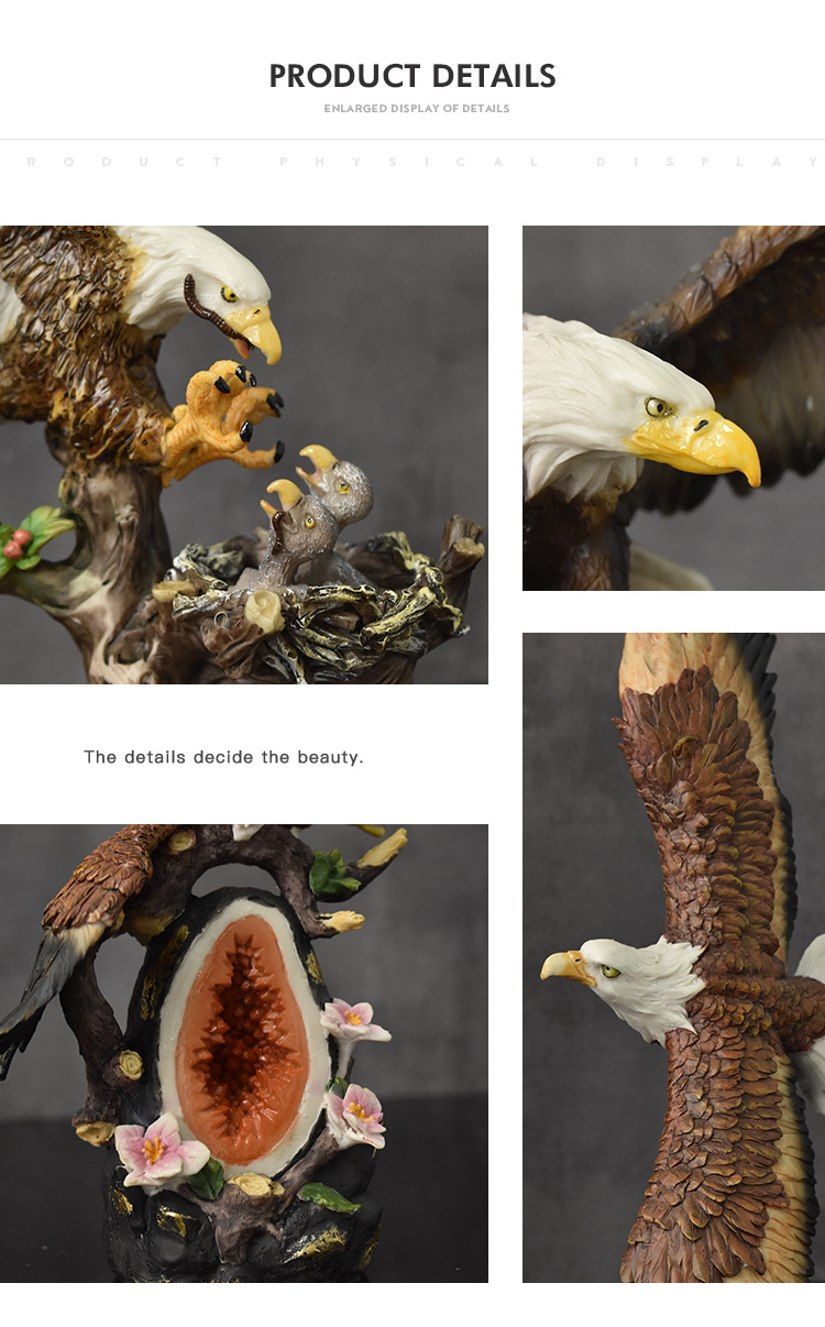 Vintage Simulation Old Male Falcon Sculpture Resin Crafts Ornaments Home Desktop Office Decoration Wings Exhibition Memorial