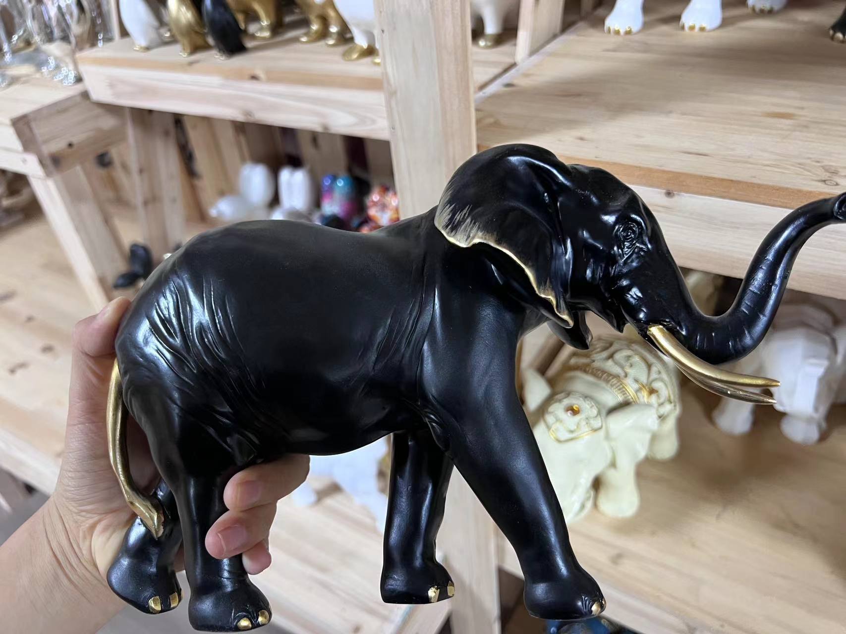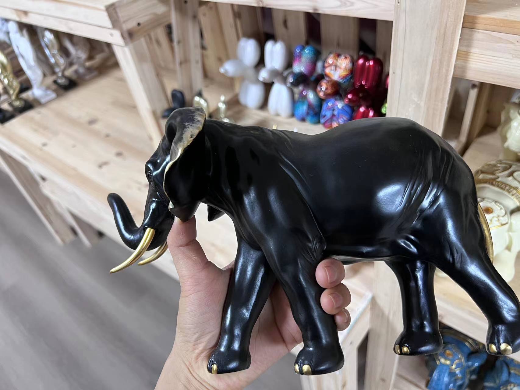 Creative Mother and Son Elephant Resin Crafts Ornaments Animal Sculpture Home Office Desktop Wine Cabinet Decorations Black and White