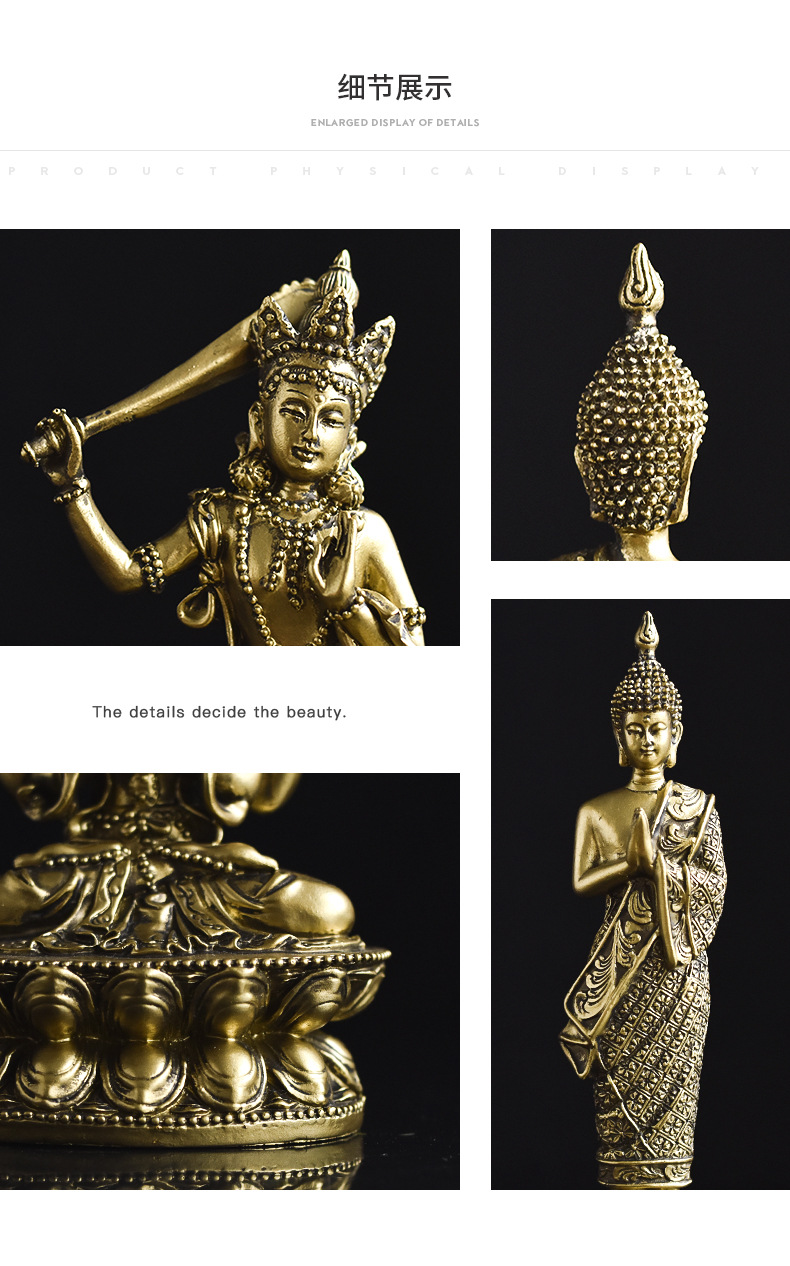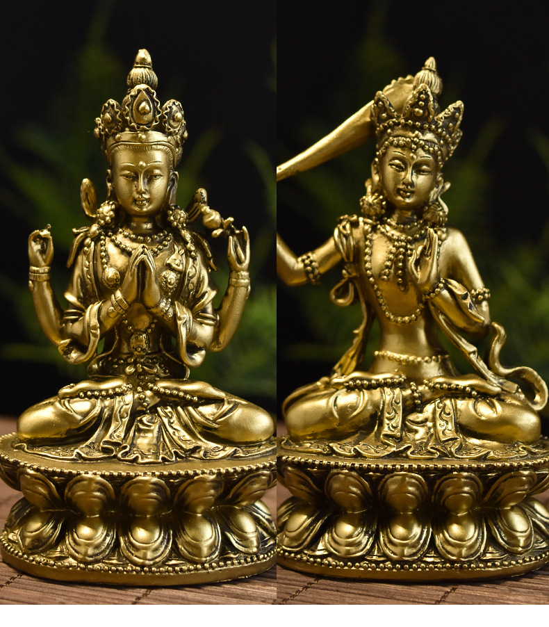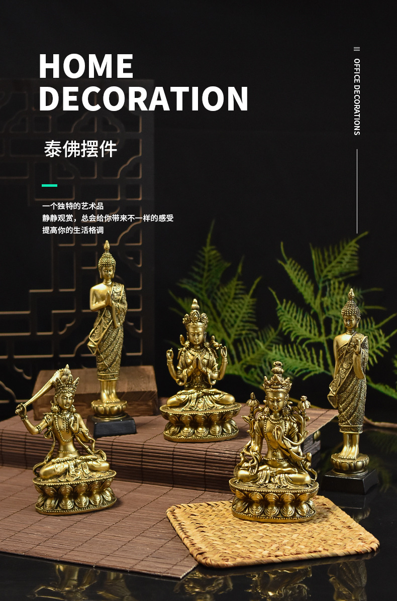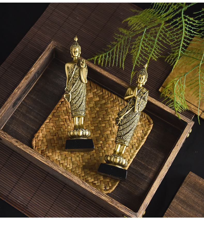 Creative Chinese Buddha Statue Ksitigarbha Manjusri Guanyin Bodhisattva Statue Thailand Golden Resin Crafts Ornaments Wholesale
