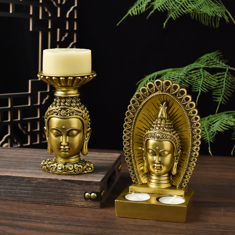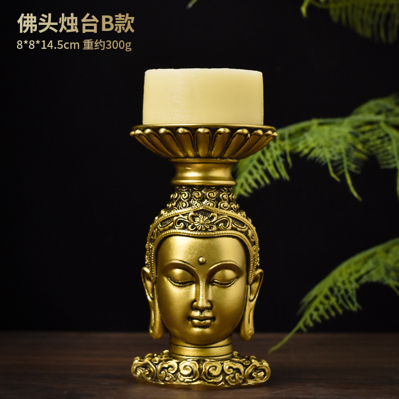Cross-border Southeast Asia Buddha Head Candlestick Resin Crafts Ornaments Religious Churches Golden Worship Buddha Temple Fair Decoration