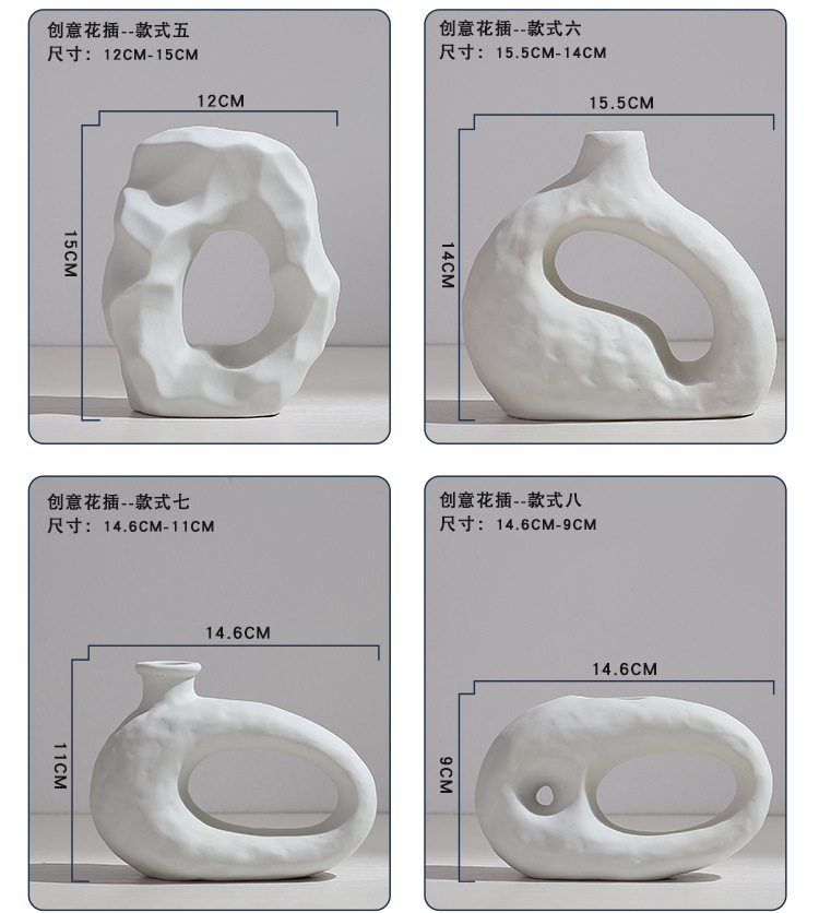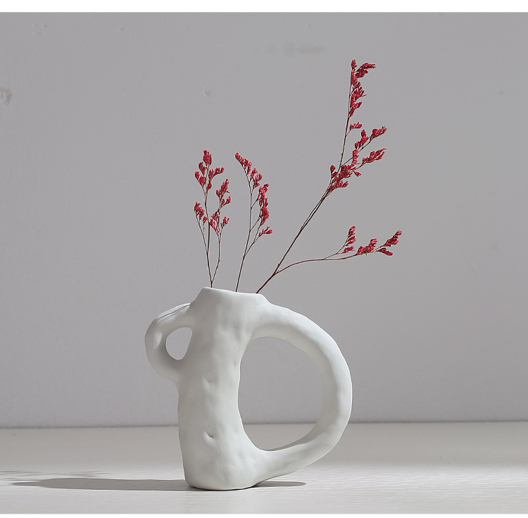 Creative Fashion White Ceramic Vase Modern Simple Dining Table Living Room Ornaments Home Decoration Dried Flower Flower Flower Set Flower