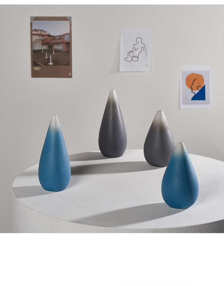 Blue Ceramic Dried Flower Vase Gradient Mediterranean Chinese Zen Style Nordic Style Fresh Decoration Living Room Flower-arranging Home