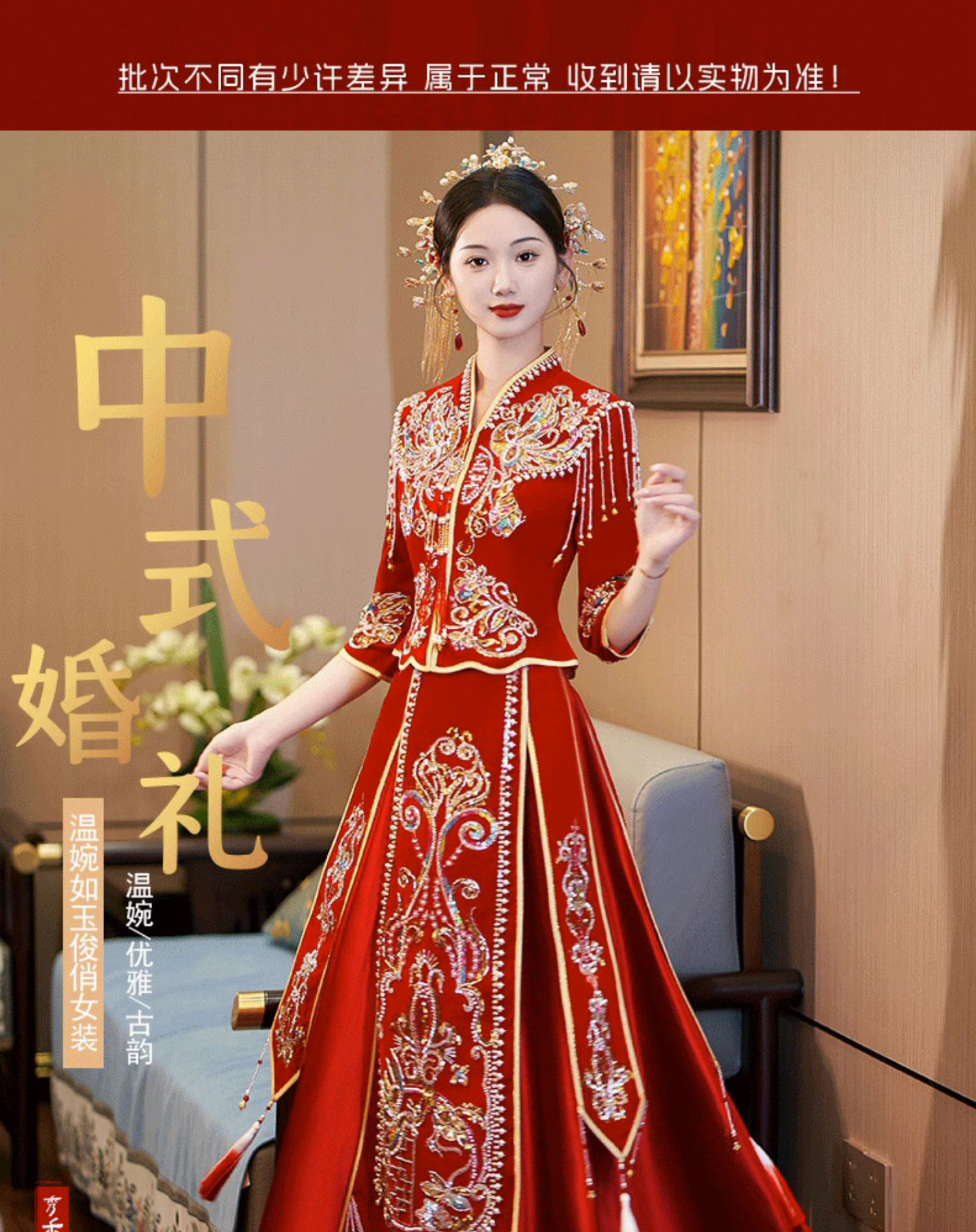 Velvet Heavy Industry Xiuhe Dress Bride Couple 2024 New Wedding Dress New Wedding Dress Chinese Wedding Dress Women Wholesale