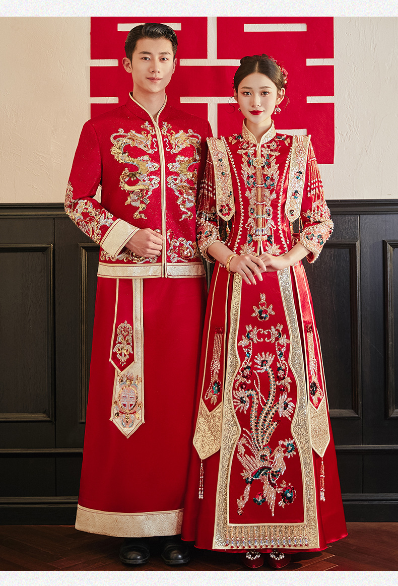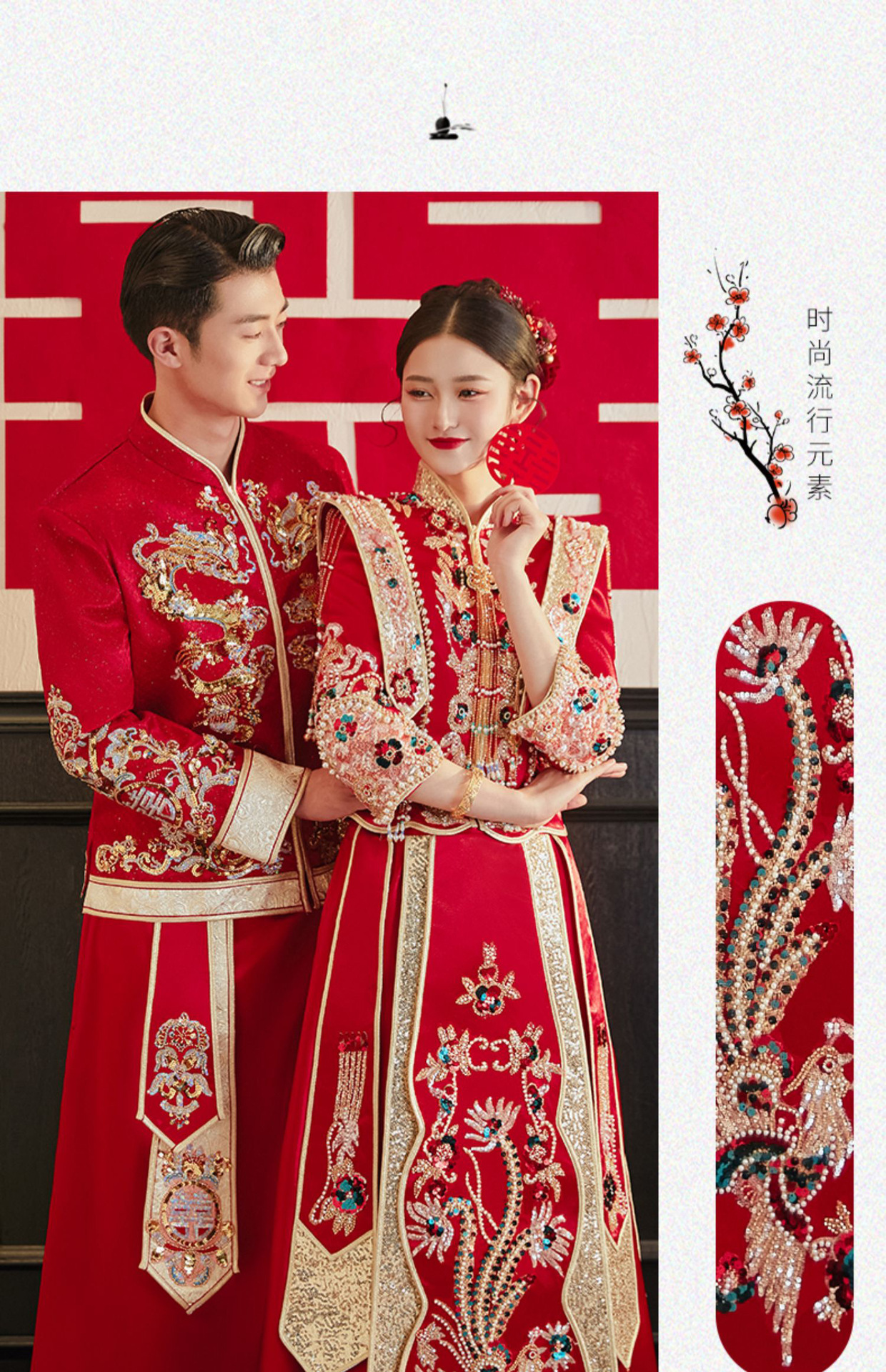 Hanfu Element Xiuhe Clothing 2024 New Autumn and Winter Bride Wedding Clothes Chinese Style Phoenix Crown and Sundress Going Out Clothes Toasting Clothing
