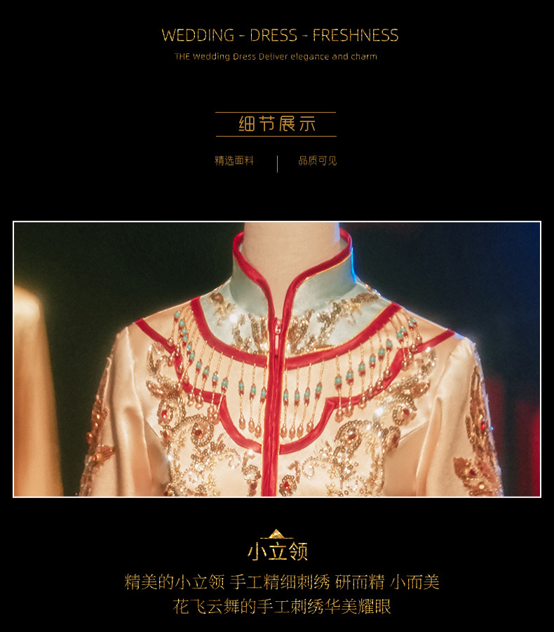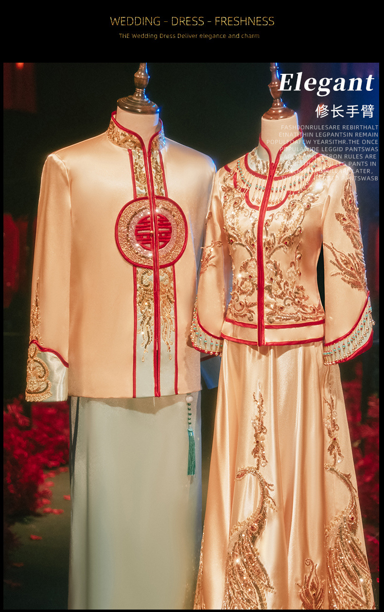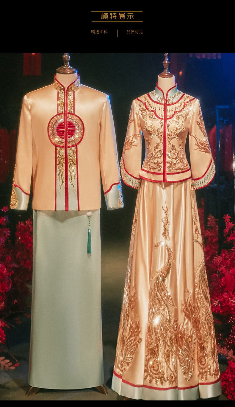 Xiuhe Dress Bride 2024 New Wedding Golden Chinese Style Wedding Dress Champagne Color Xiuhe Couple suit Dragon and Phoenix Jacket
