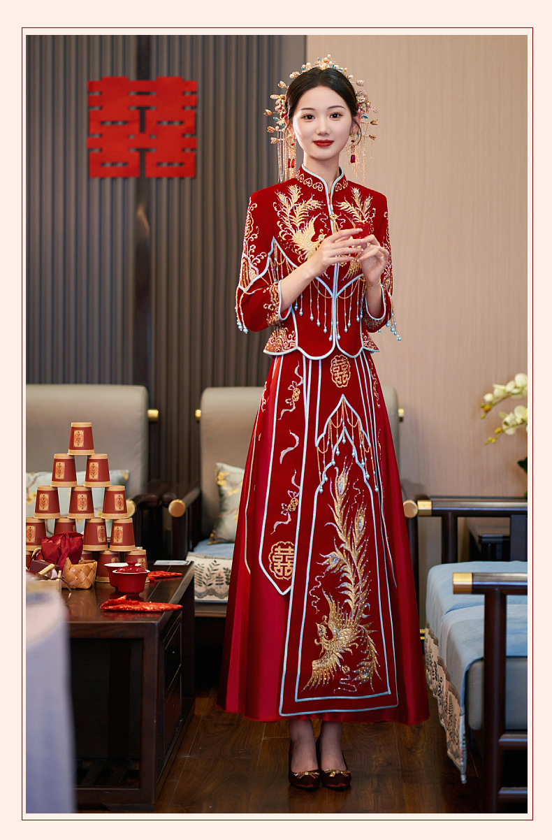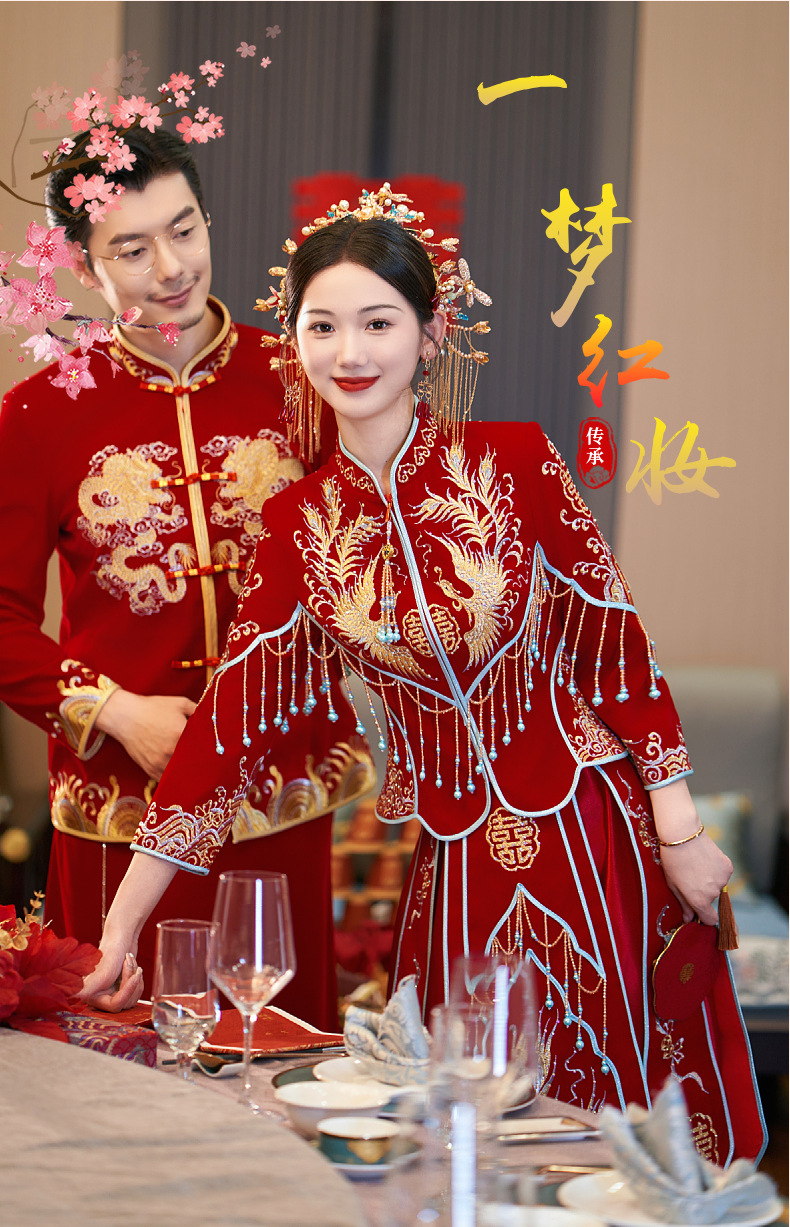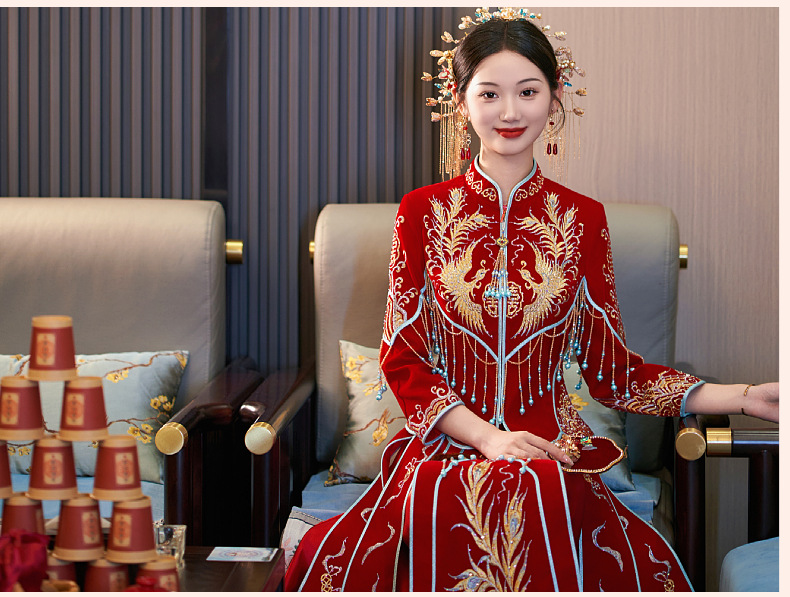 Velvet Xiuhe Dress 2024 Bride's Chinese Wedding Dress Heavy Industry Show Kimono Wedding Dress Toast Wedding Dress Couples suit