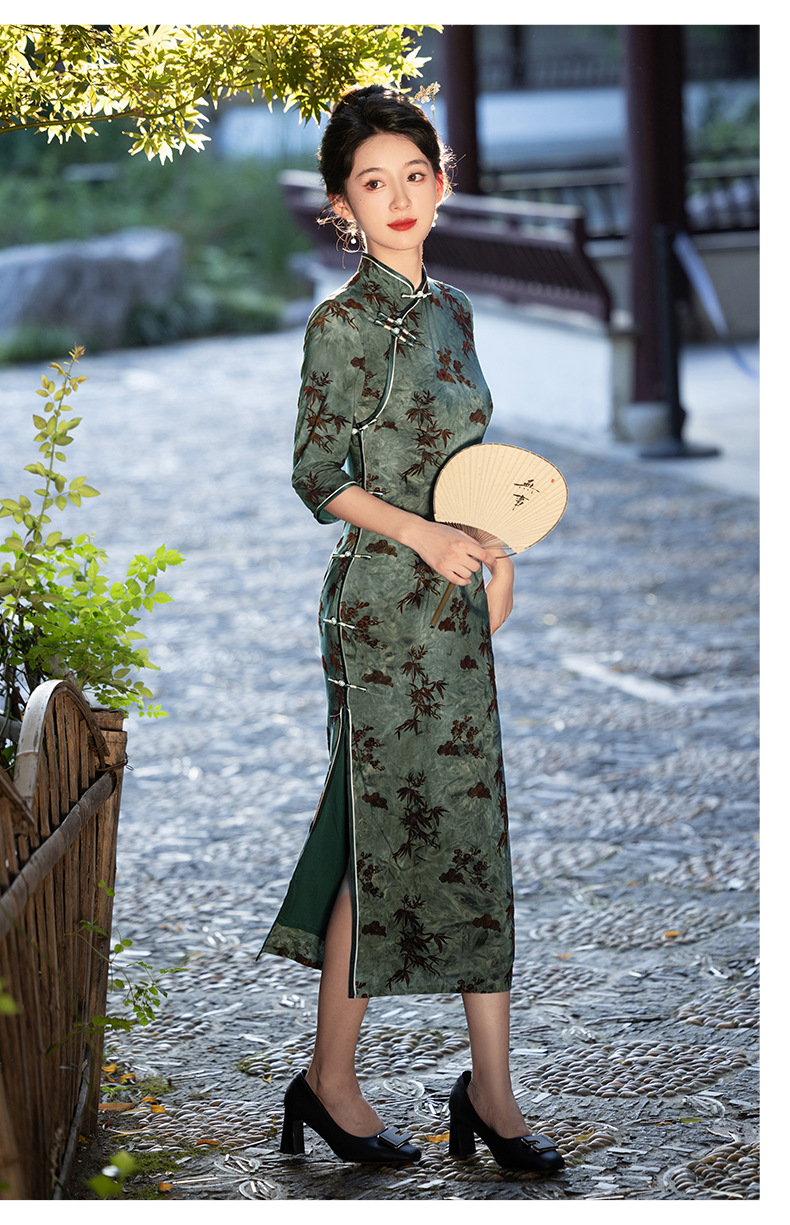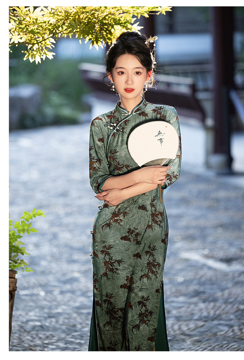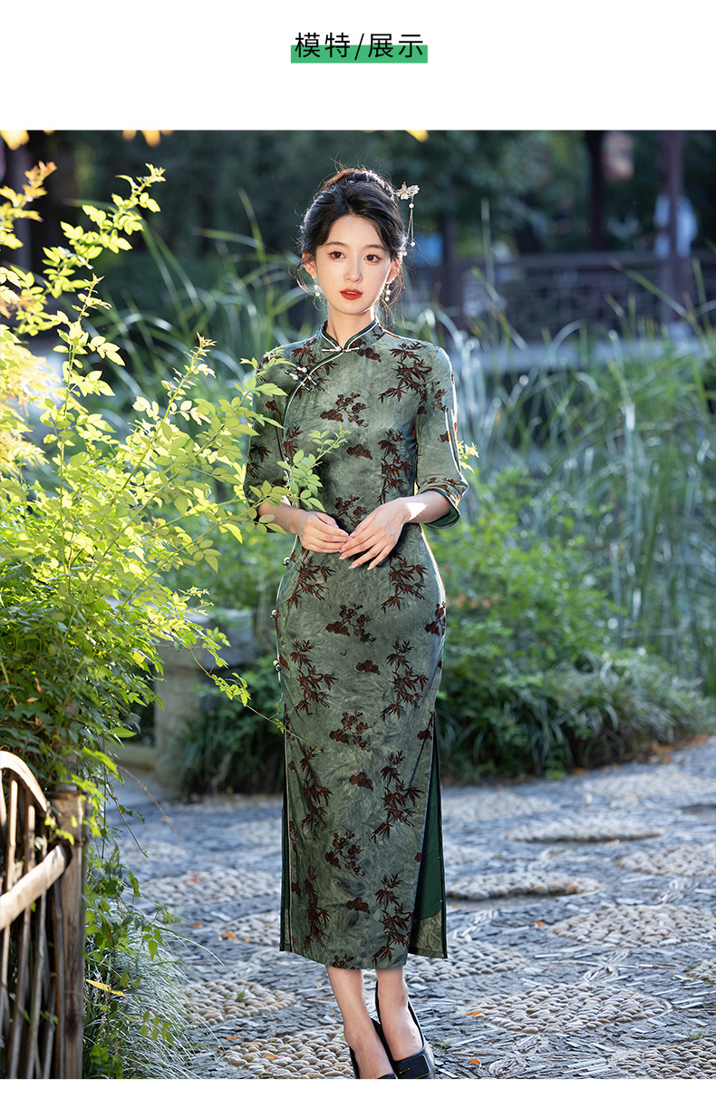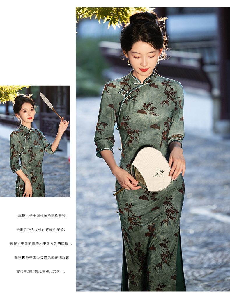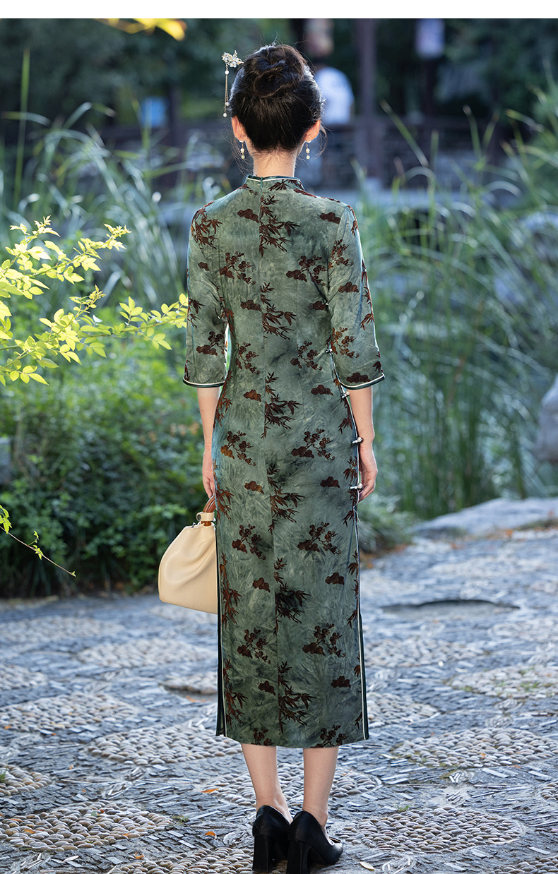 High-class sense temperament simple and elegant cheongsam 2024 autumn new milk silk tie-dye flocking high-end improved new Chinese style