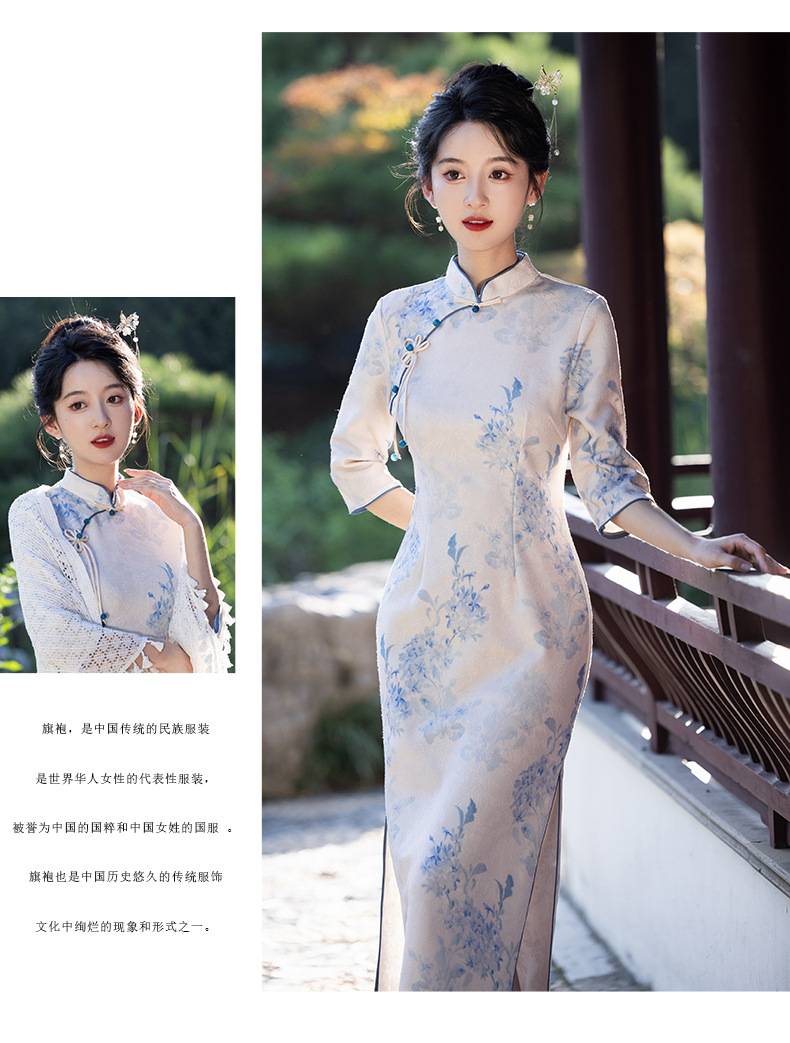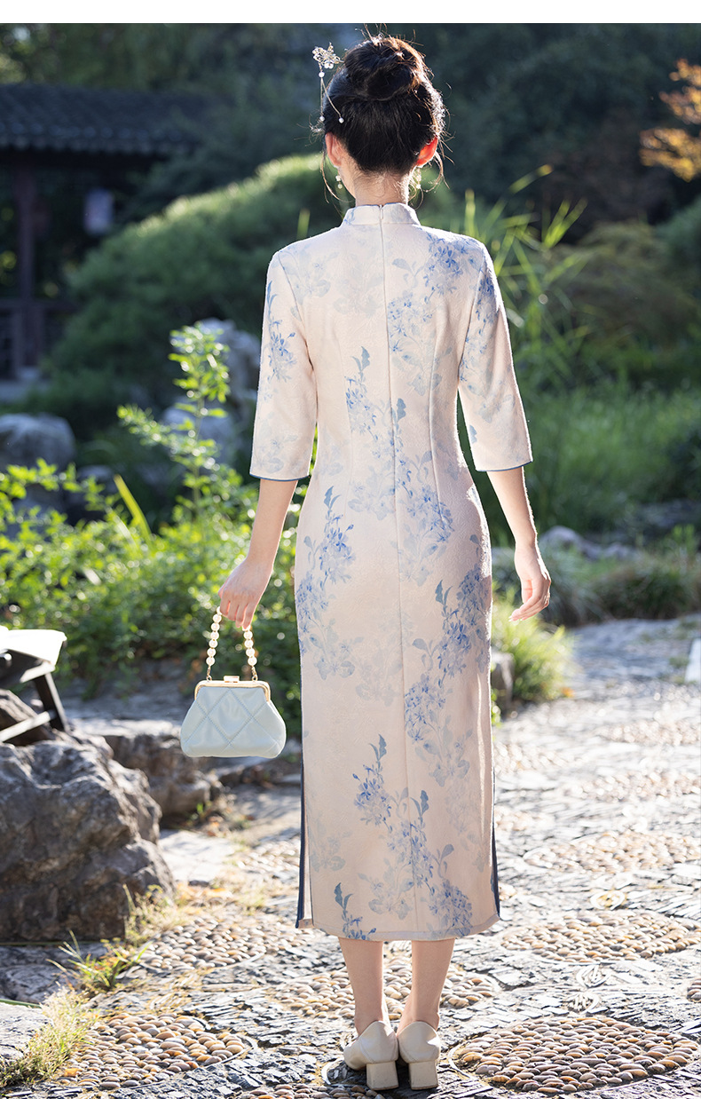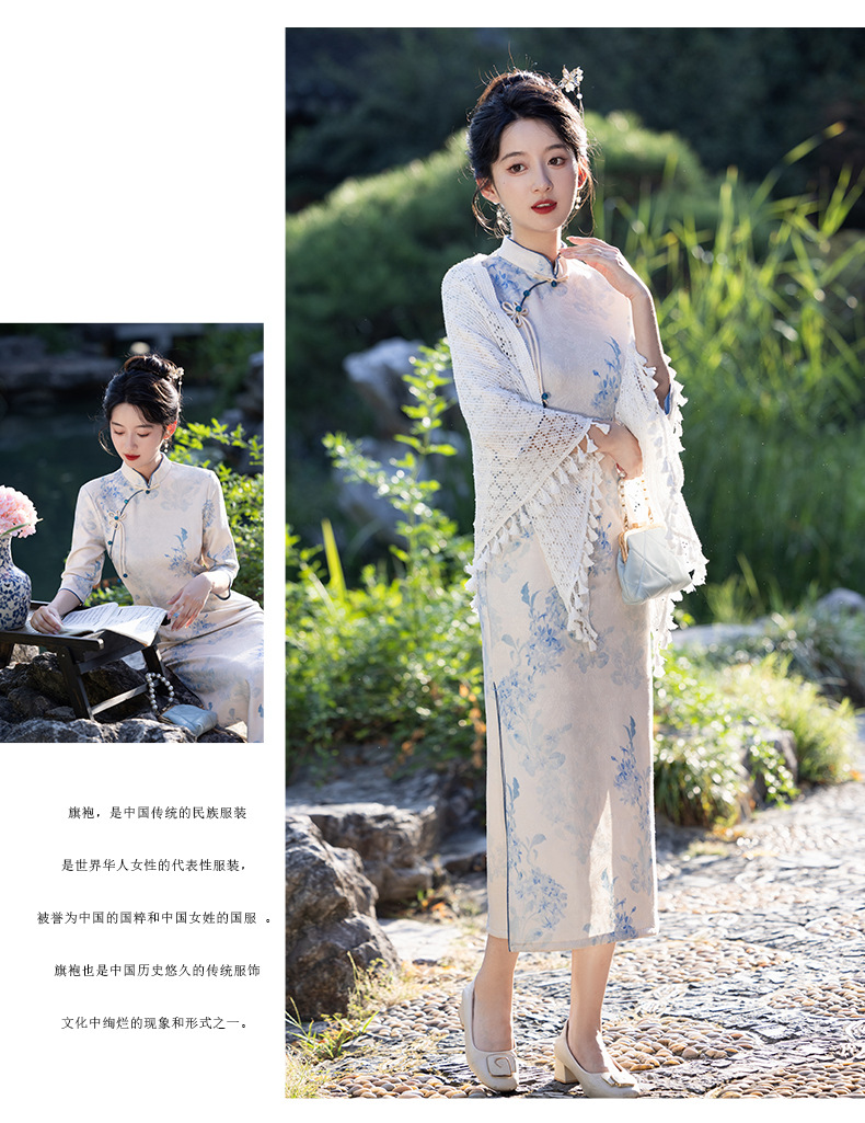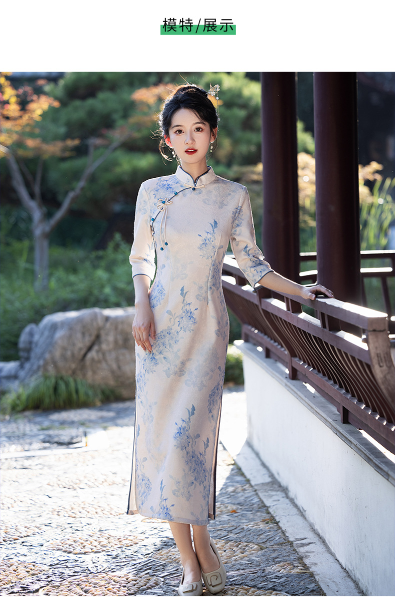 Autumn New Chinese Cheongsam Improved Long National Style 2024 New Milk Silk Elegant Slimming Daily Young Cheongsam