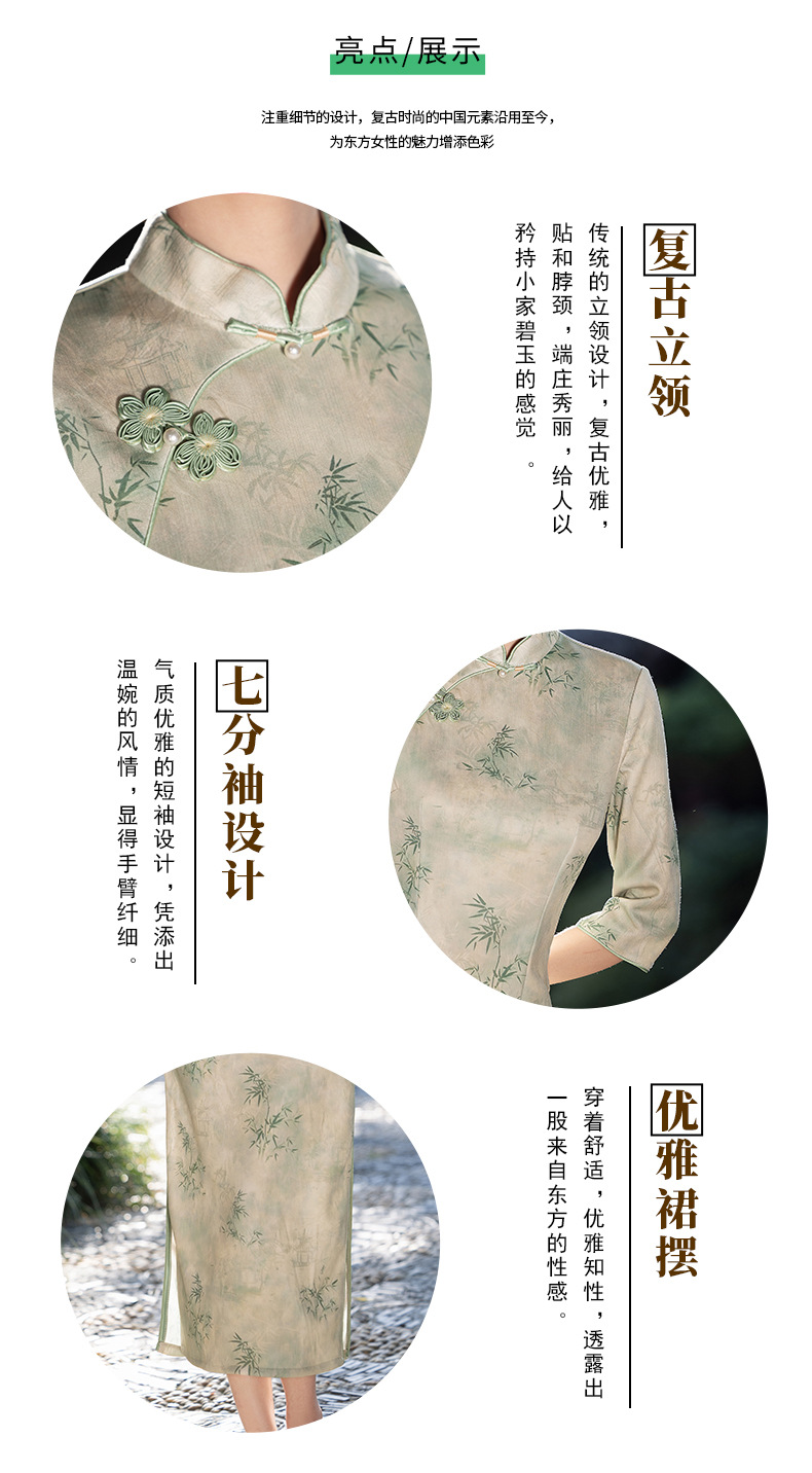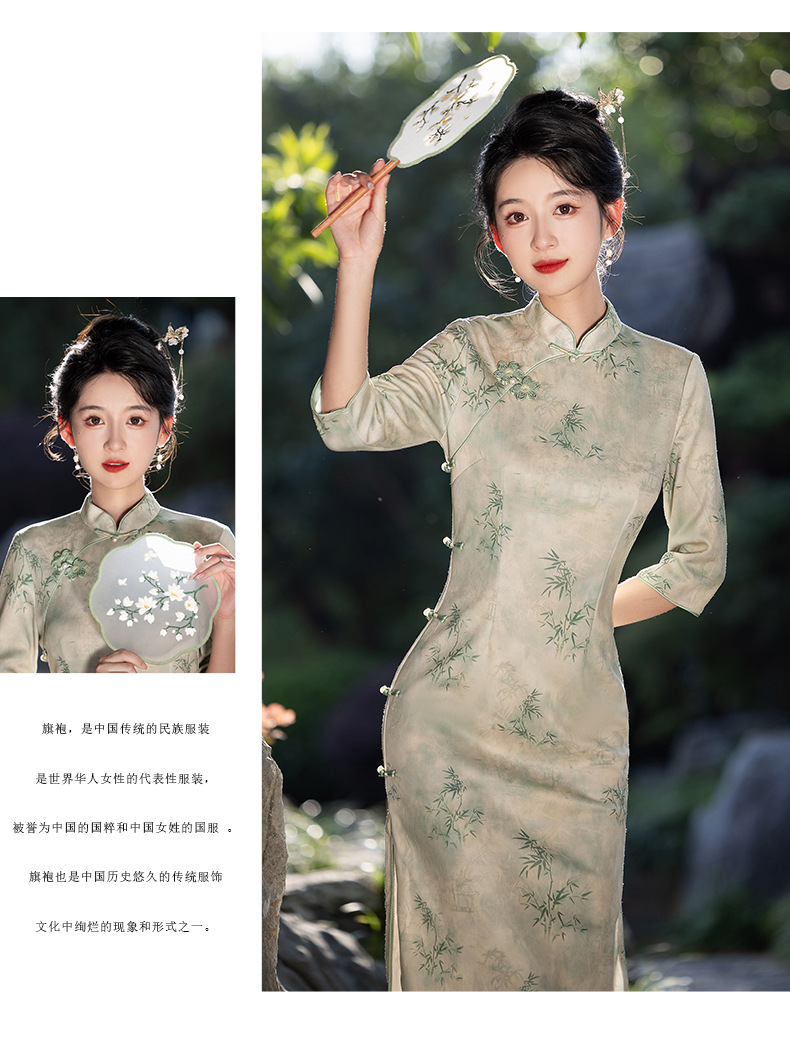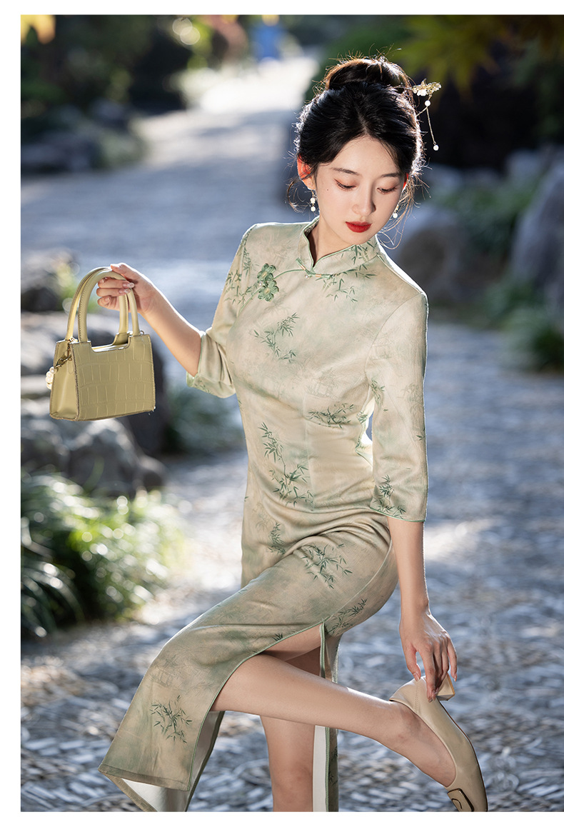 Long 2024 Autumn New Cheongsam Improved Women's High-end Temperament Plain Elegant Retro Daily Elegant Seven-point Sleeve