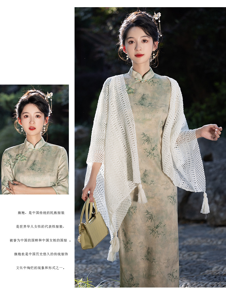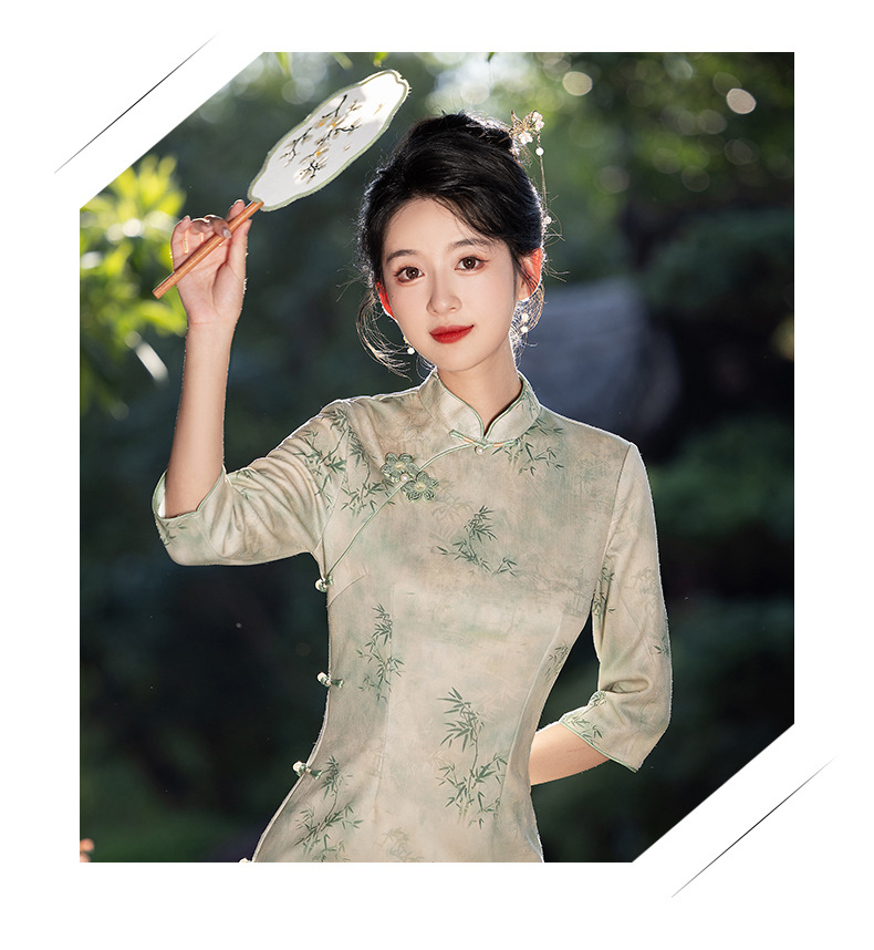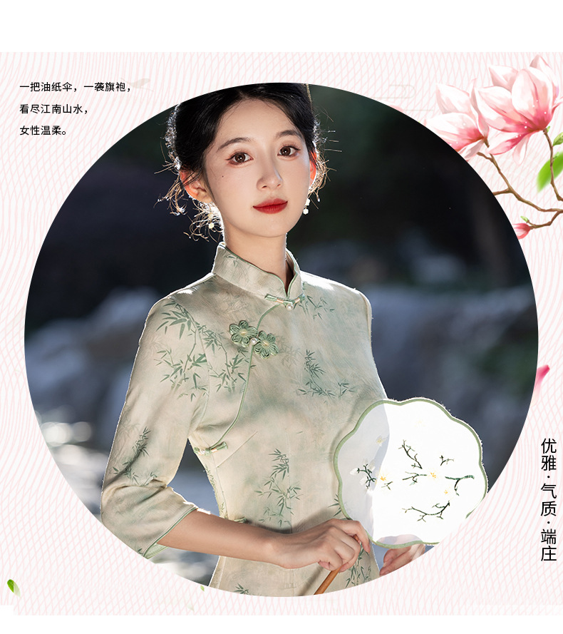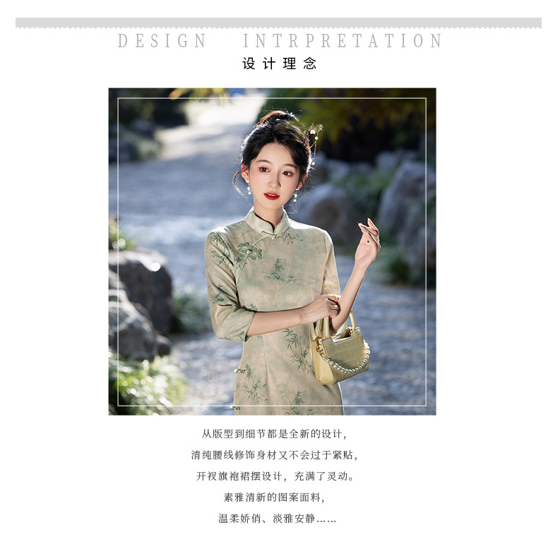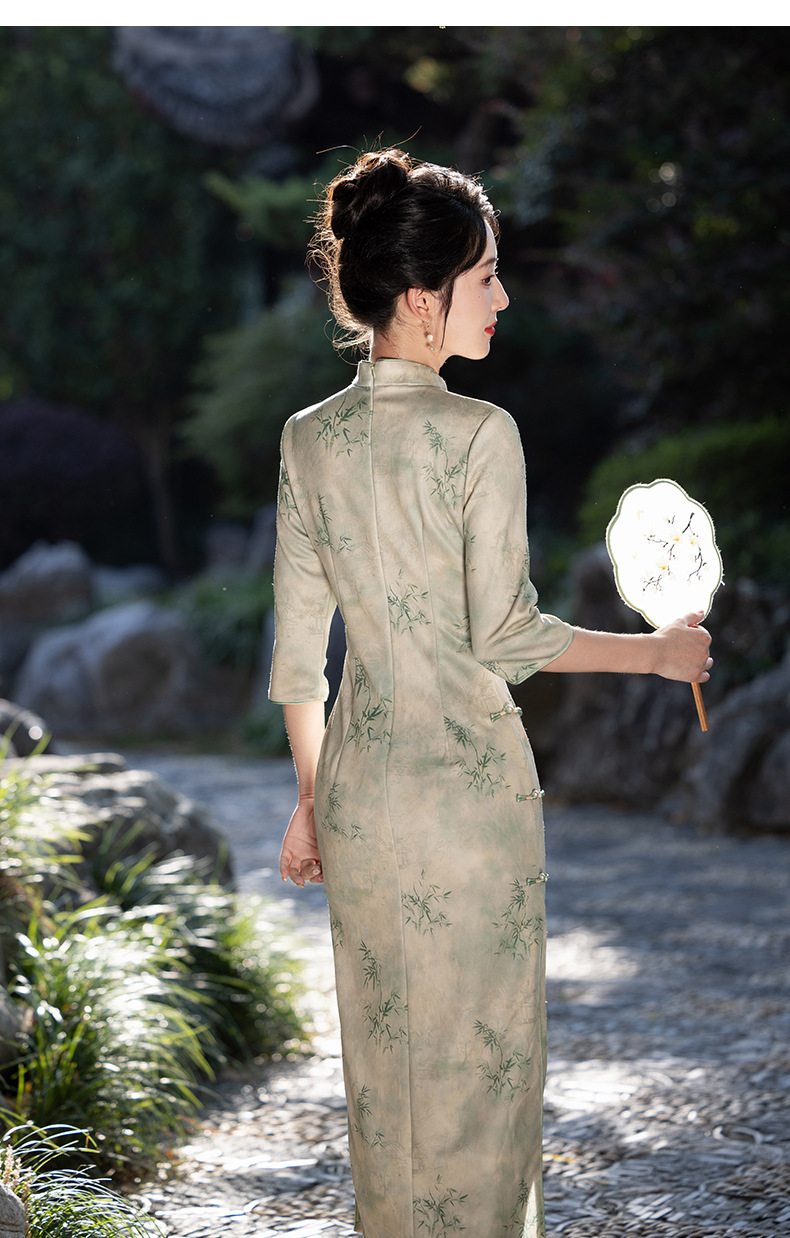 Long 2024 Autumn New Cheongsam Improved Women's High-end Temperament Plain Elegant Retro Daily Elegant Seven-point Sleeve