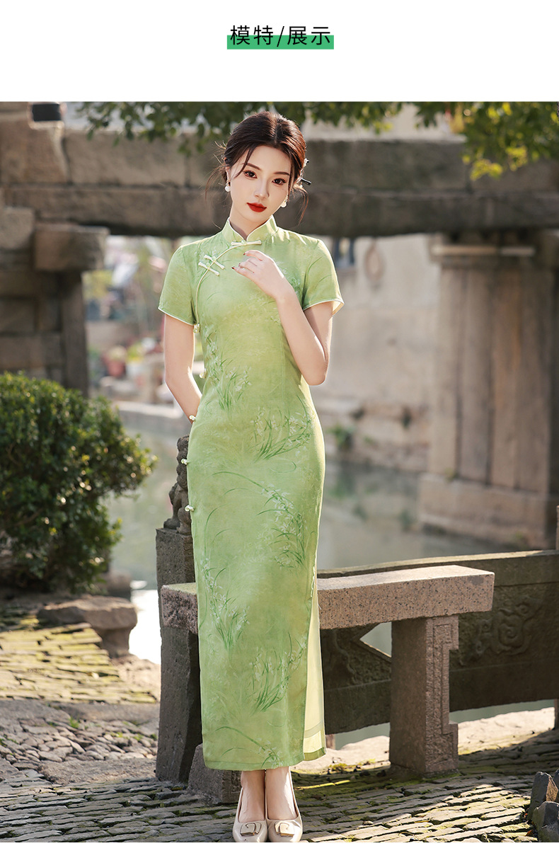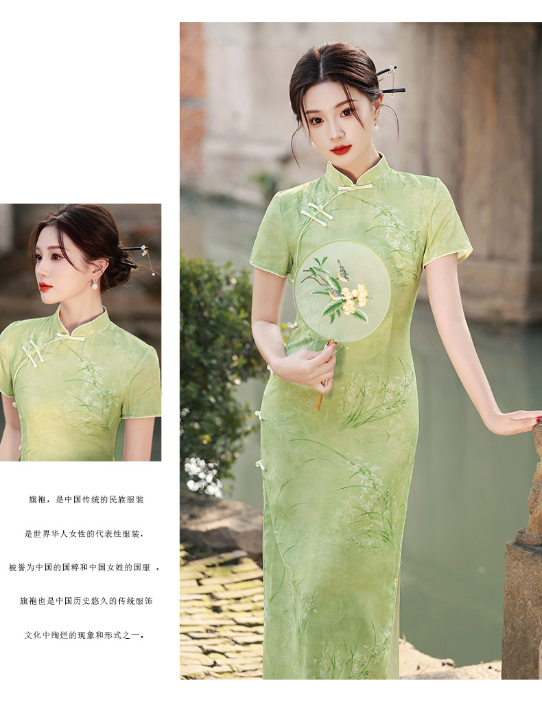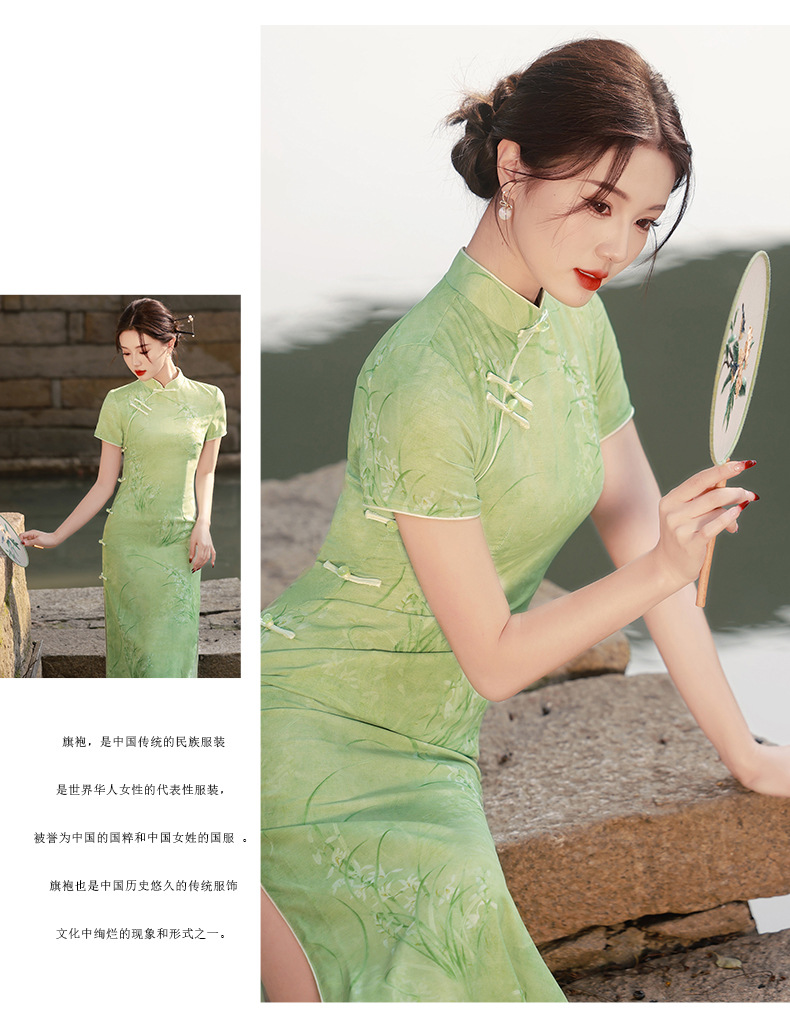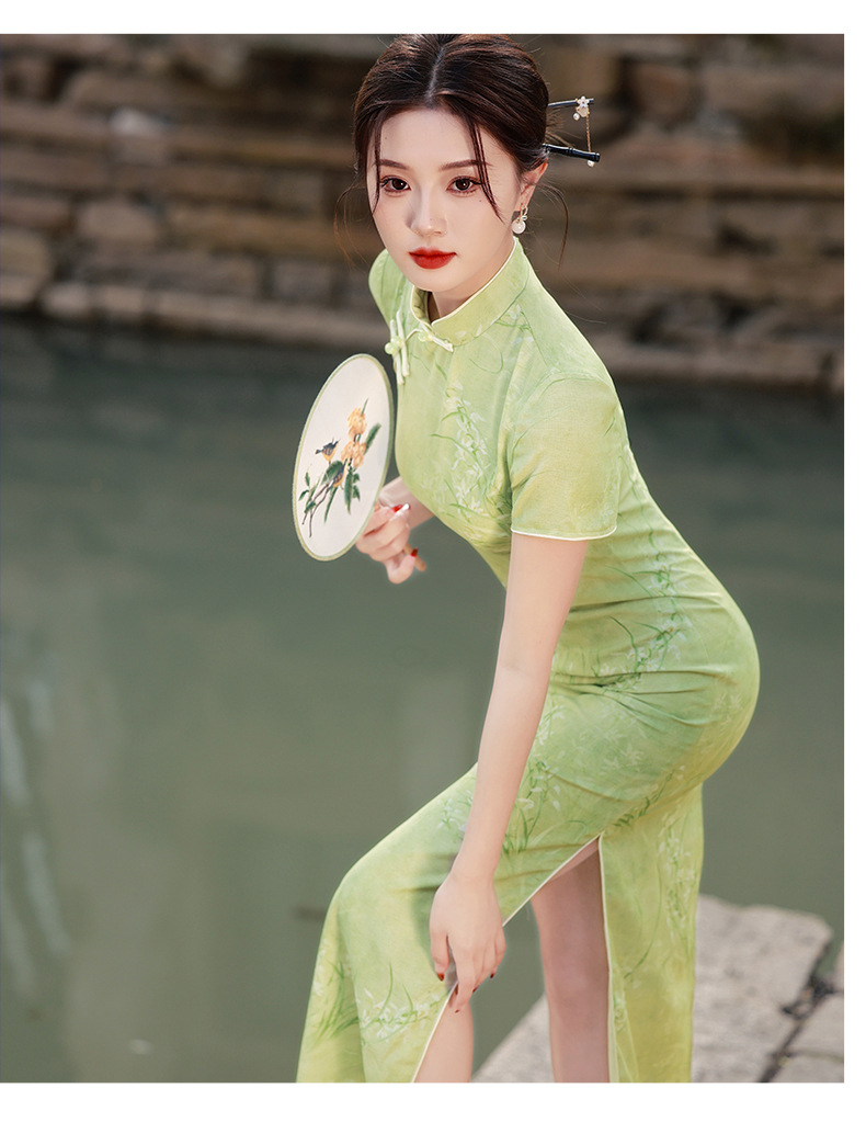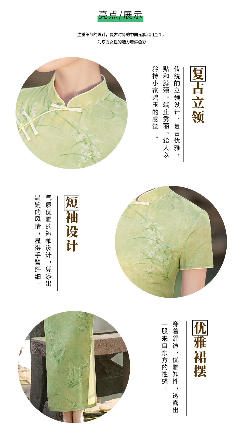 Princess Qianjin Summer New Chinese Style Jiangnan Antique Town Plain Elegant Atmosphere Double-layer Slub Slub Maiden Slim-fit Cheongsam