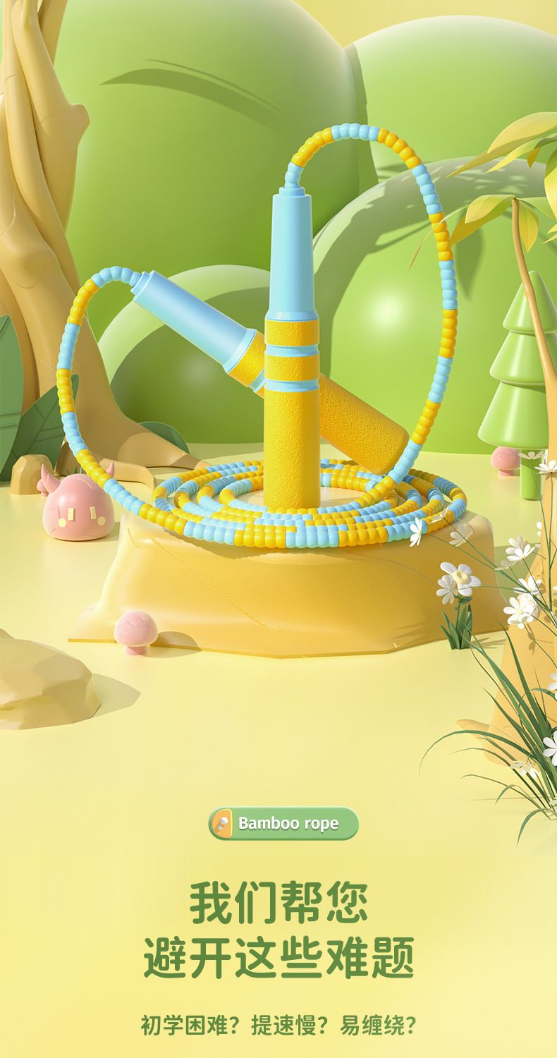 Strict Selection of Children's Slub Rope Skipping for Primary and Middle School Students Adjustable No Knot Children's Signature Soft Bead Pattern Slub Rope Skipping