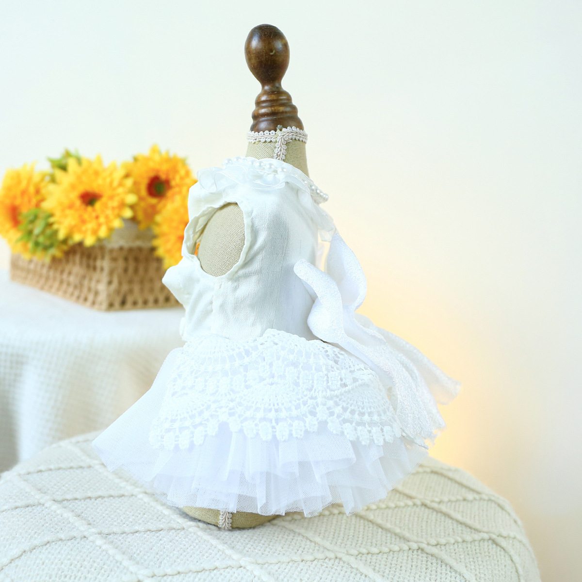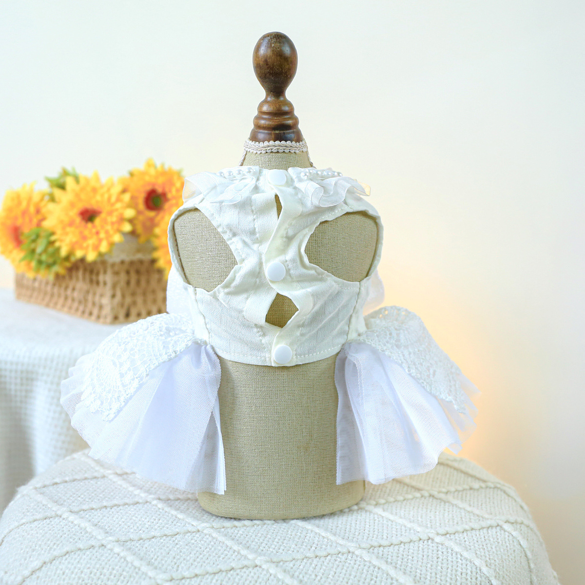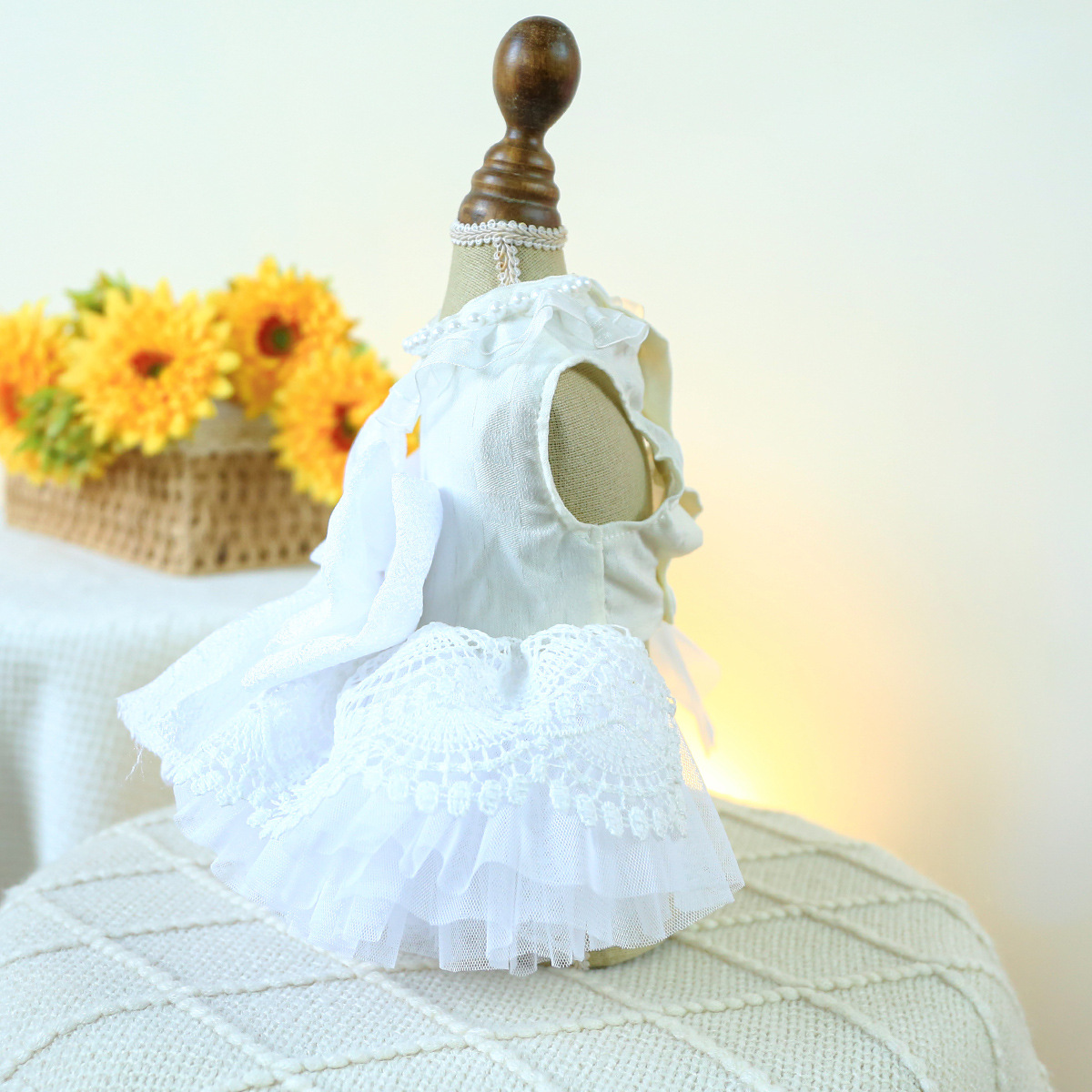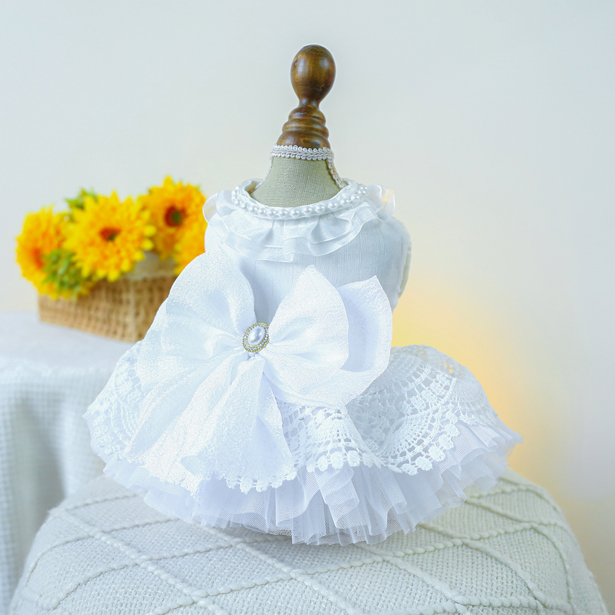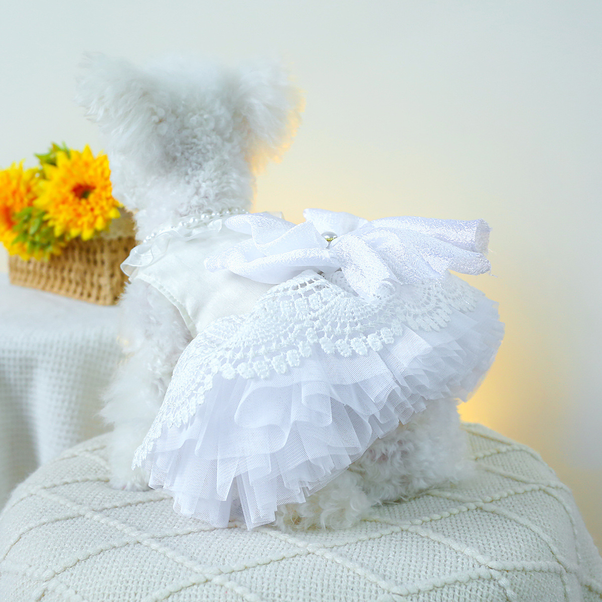 Pet Circle Dog Clothes Wholesale Spring and Summer New Small and Medium Dog White Wedding Dress Pearl Princess Wedding Dress