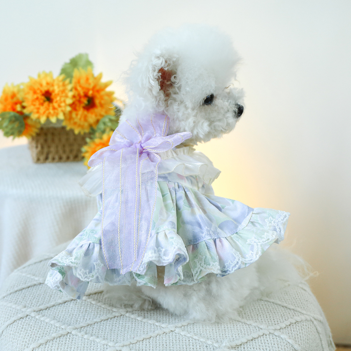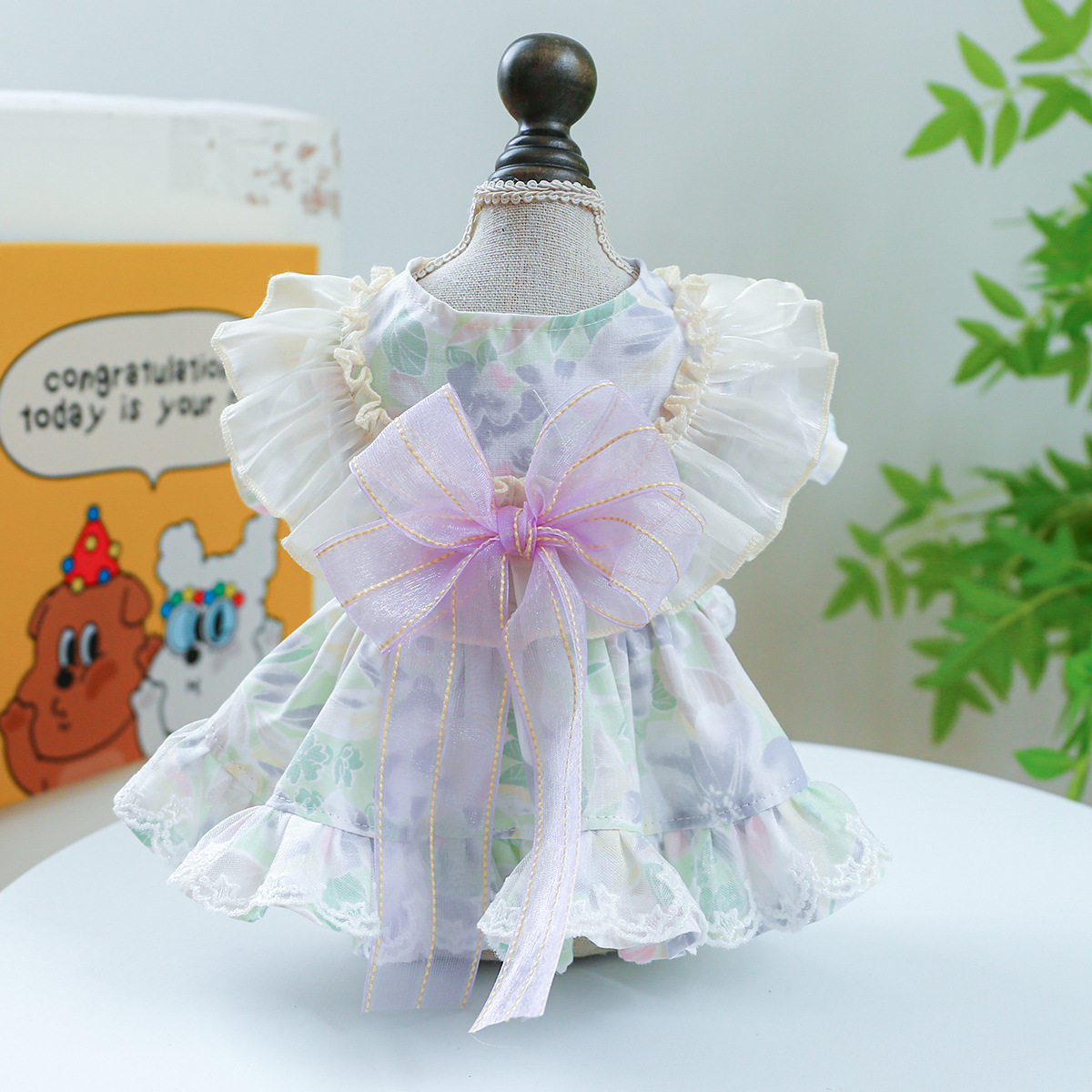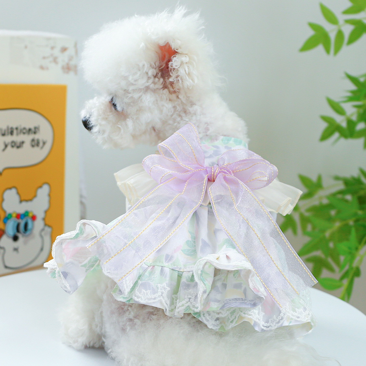 Pet Clothes Dog Cat Clothing Clothing Wholesale Spring and Summer Princess Dress Cute Lace Bow Midsummer Flower Dress