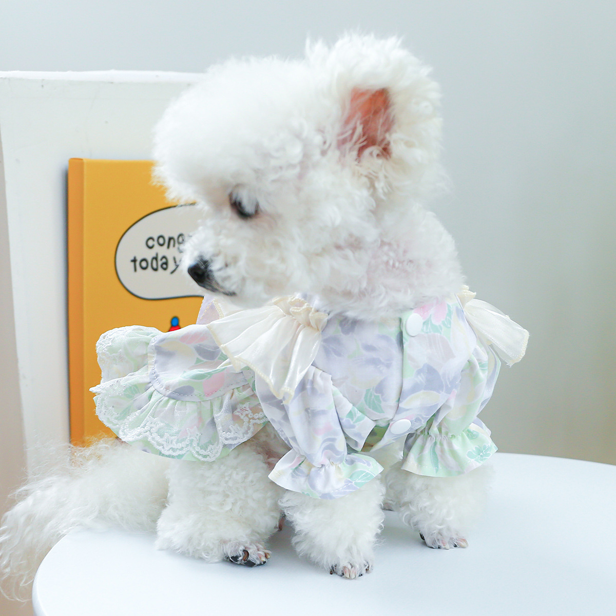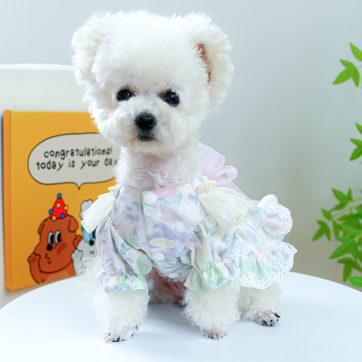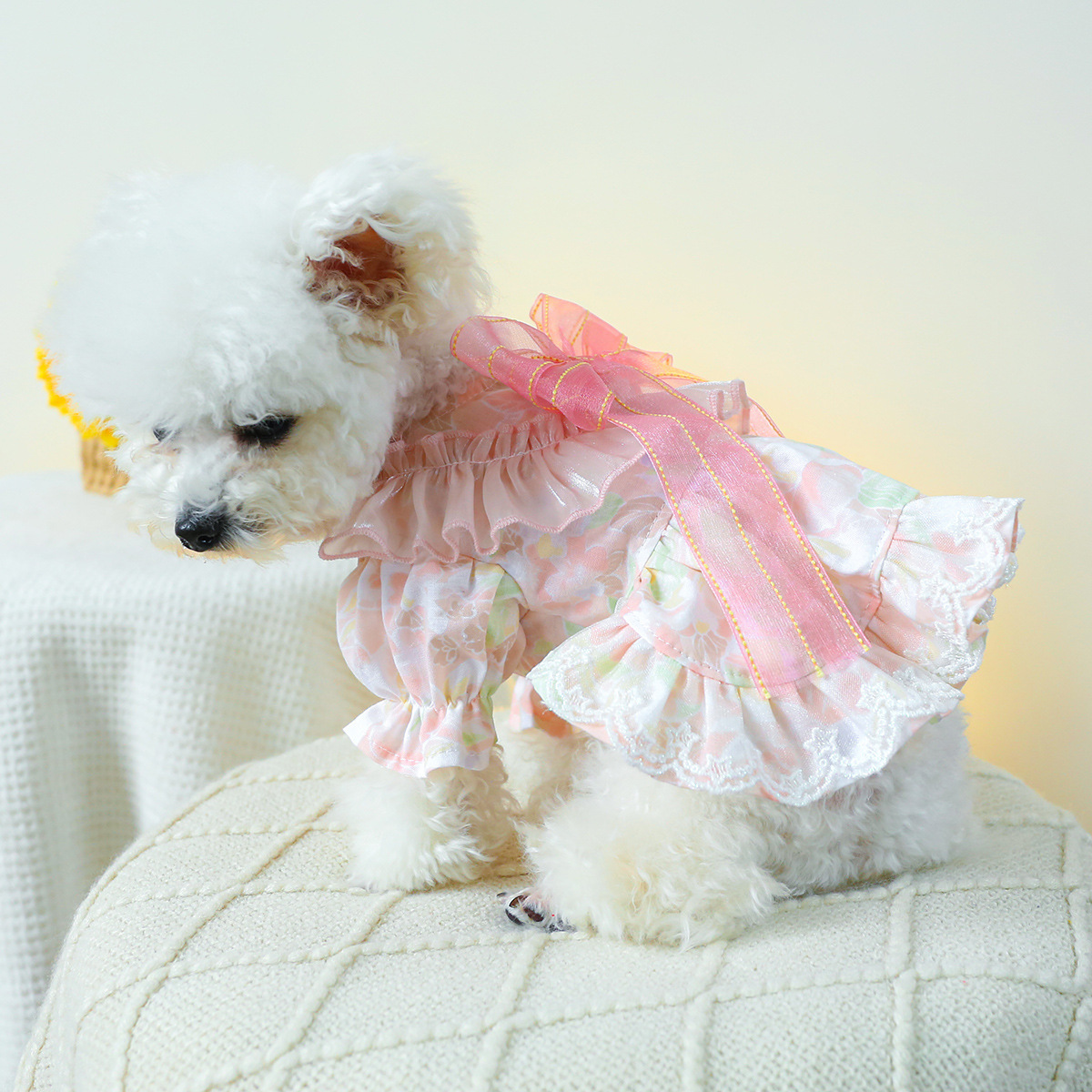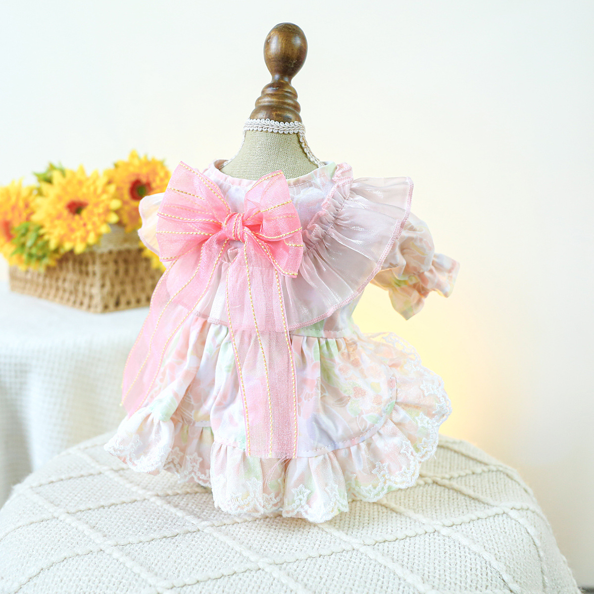 Pet Clothes Dog Cat Clothing Clothing Wholesale Spring and Summer Princess Dress Cute Lace Bow Midsummer Flower Dress