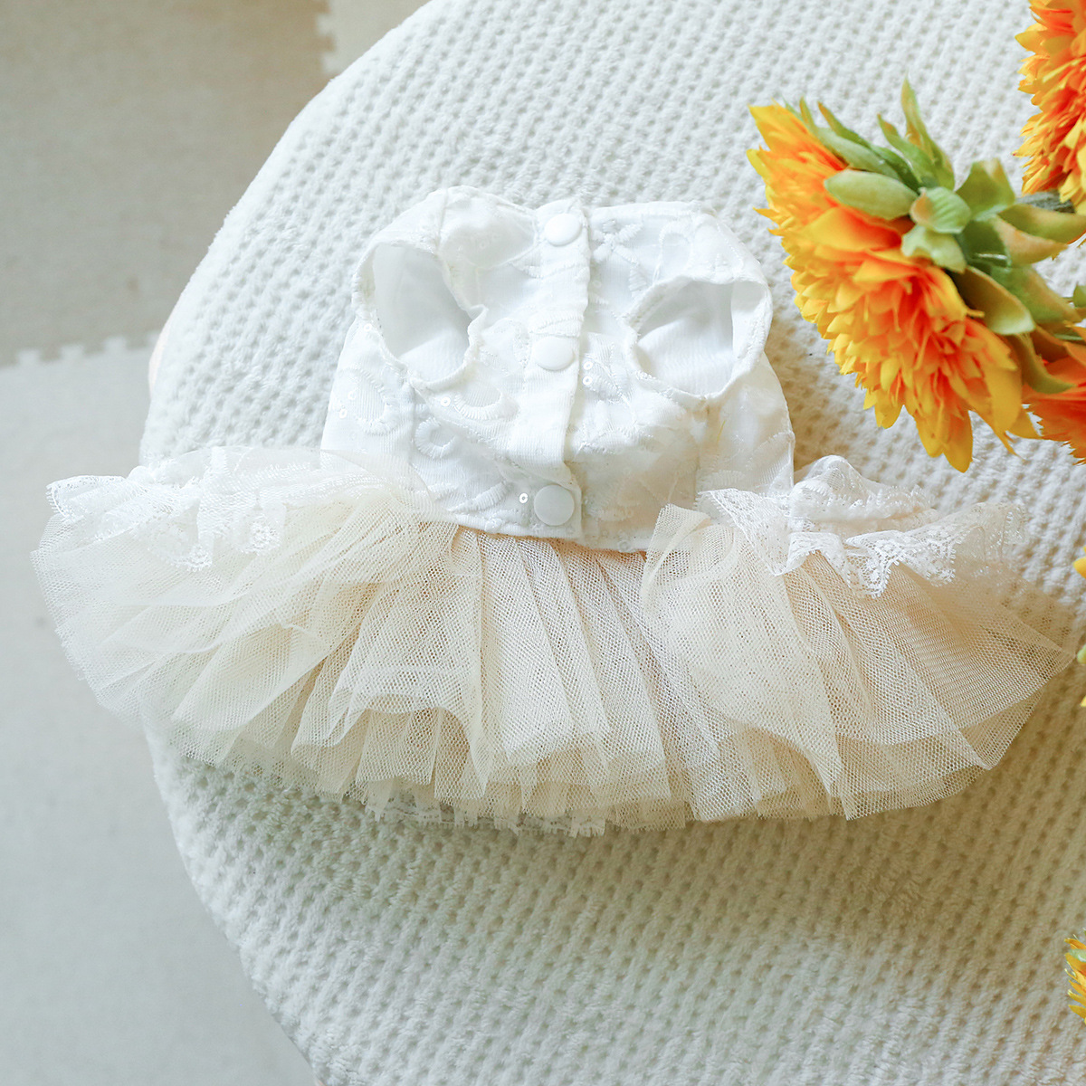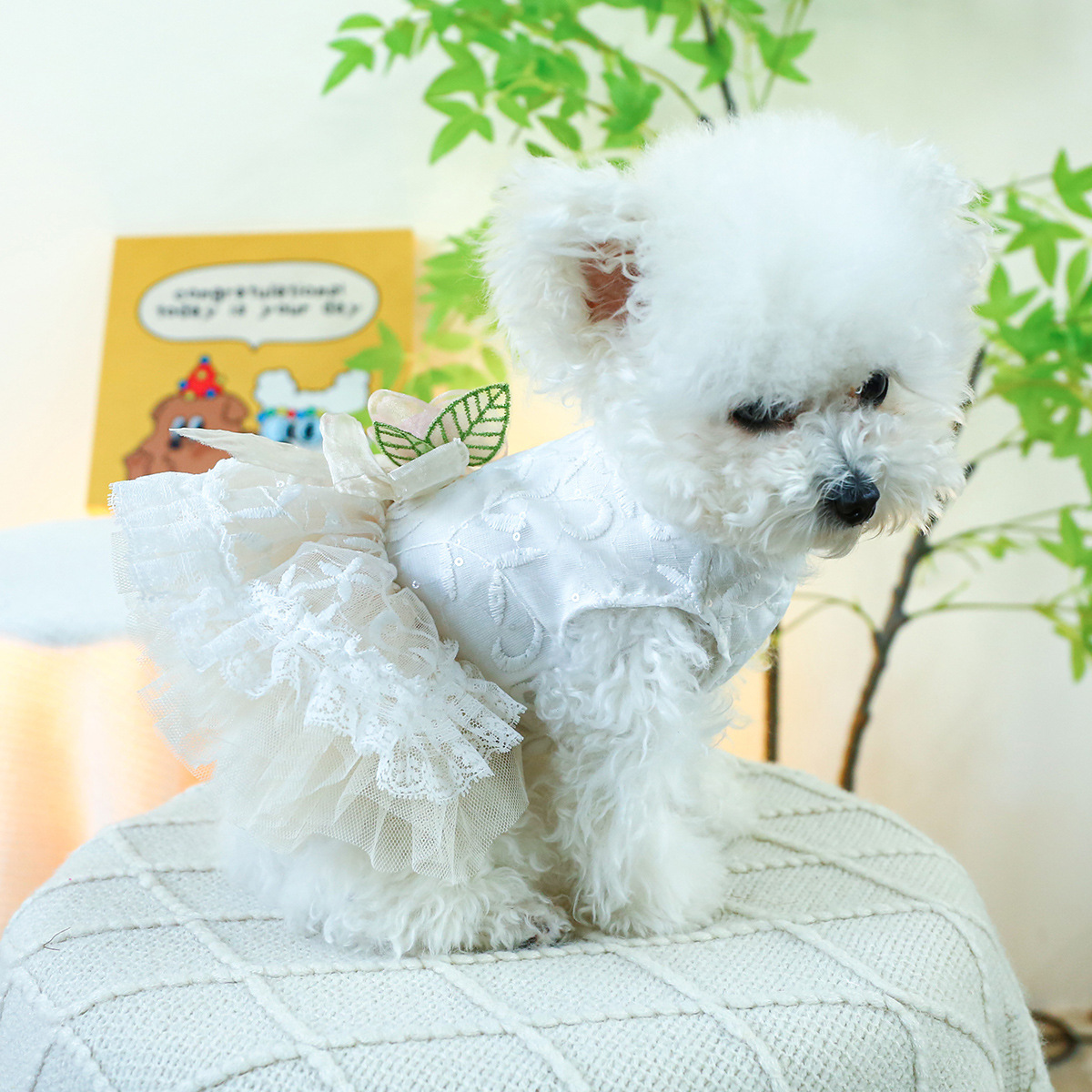 Pet ring dog clothes wholesale spring and summer new small and medium dog cute puffy gauze skirt vintage flower wedding dress