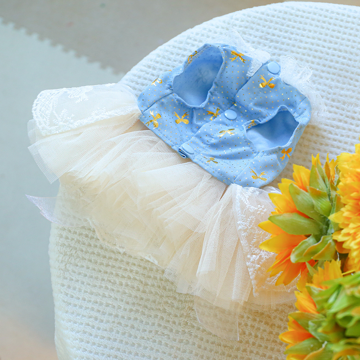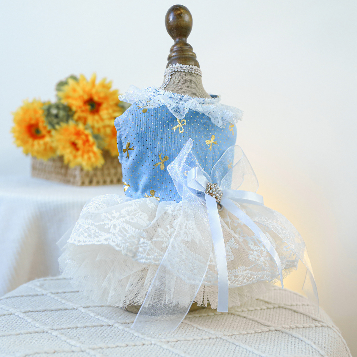 Pet ring dog clothes wholesale spring and summer new cute gauze skirt bow fresh princess blue wind chime gauze skirt