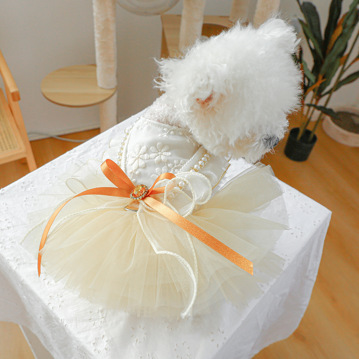 Pet ring dog clothes wholesale spring and summer new small and medium dog princess puffy gauze skirt gilded wedding dress dress