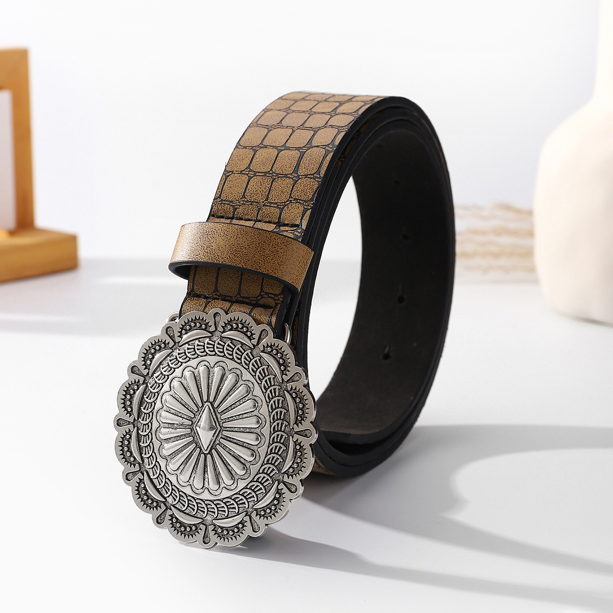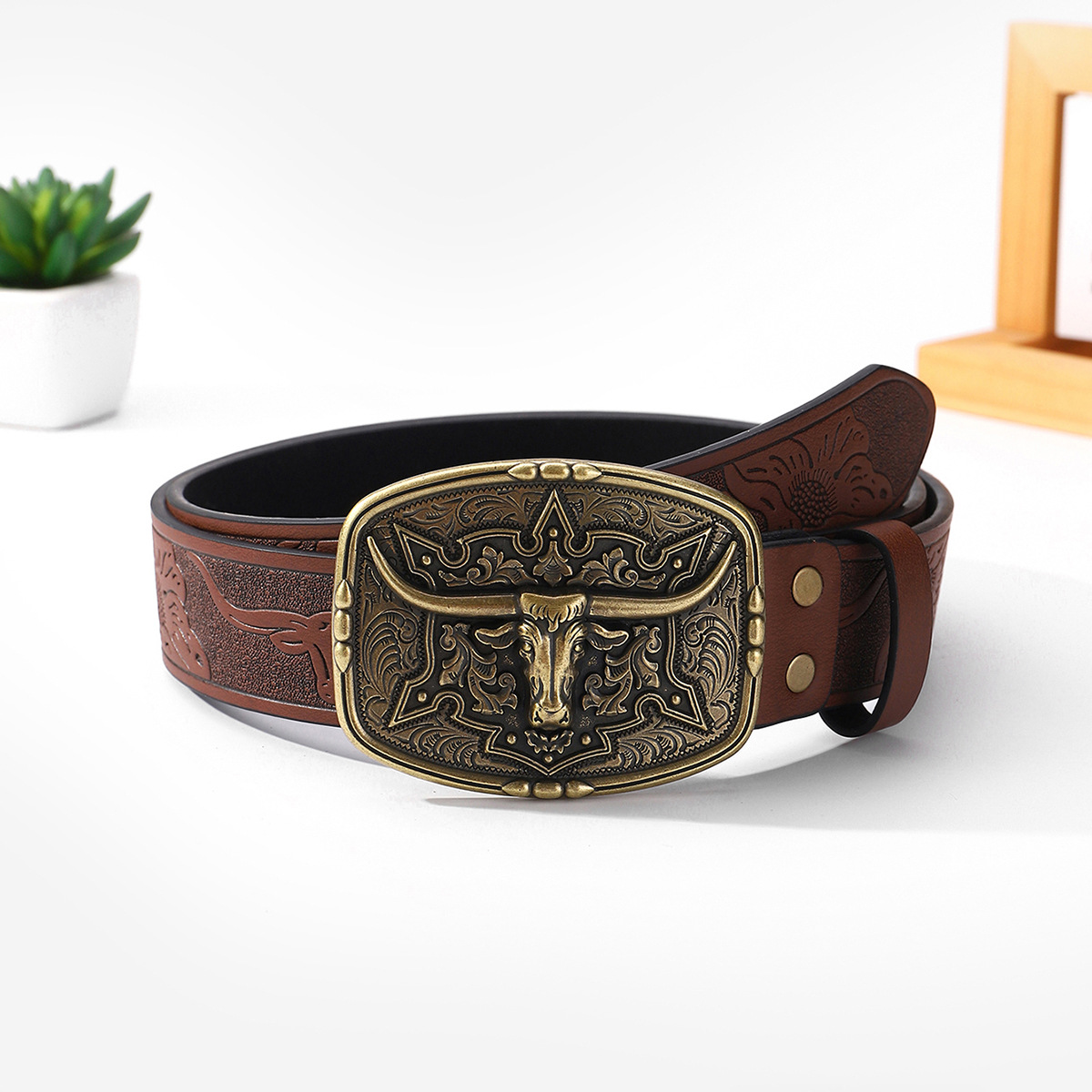Ngau Tau Belt Men's Retro Belt Distinctive Youth and Middle-aged Plate Buckle Belt Casual Pants All-match Simple