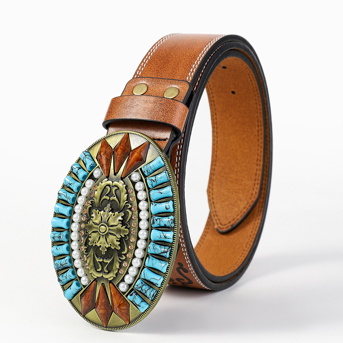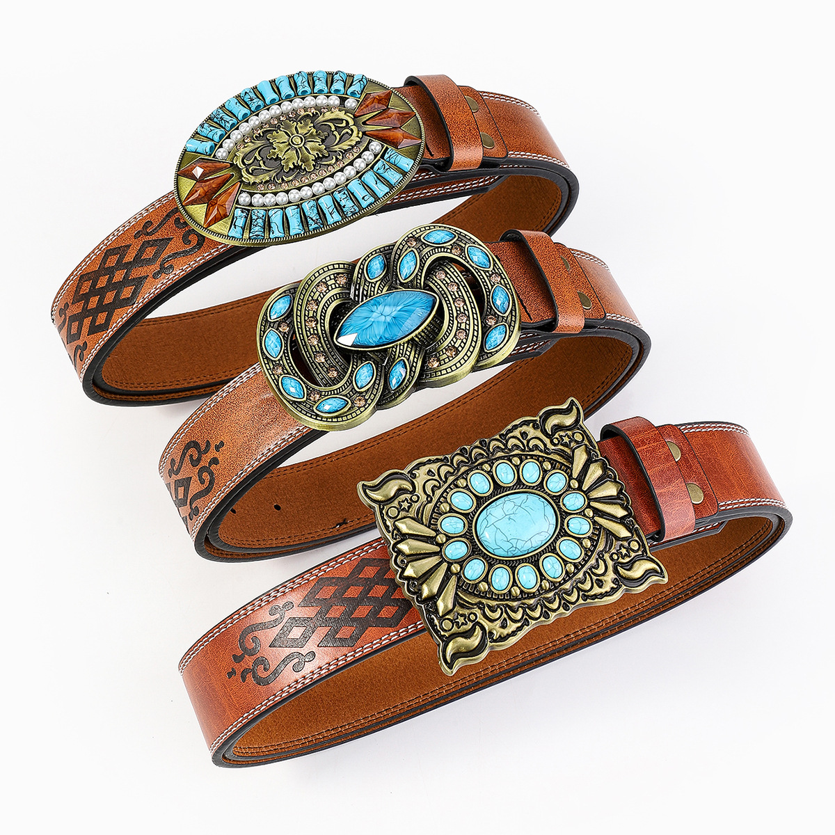 Cross-border western Denim carved large plate buckle fashion retro men's punk style belt personality wide belt wholesale