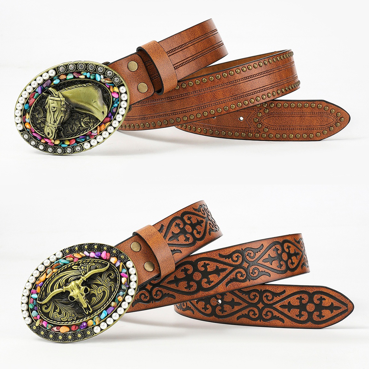 Western Denim belt men's casual wide belt fashion Joker belt cross-border retro waist seal manufacturers wholesale
