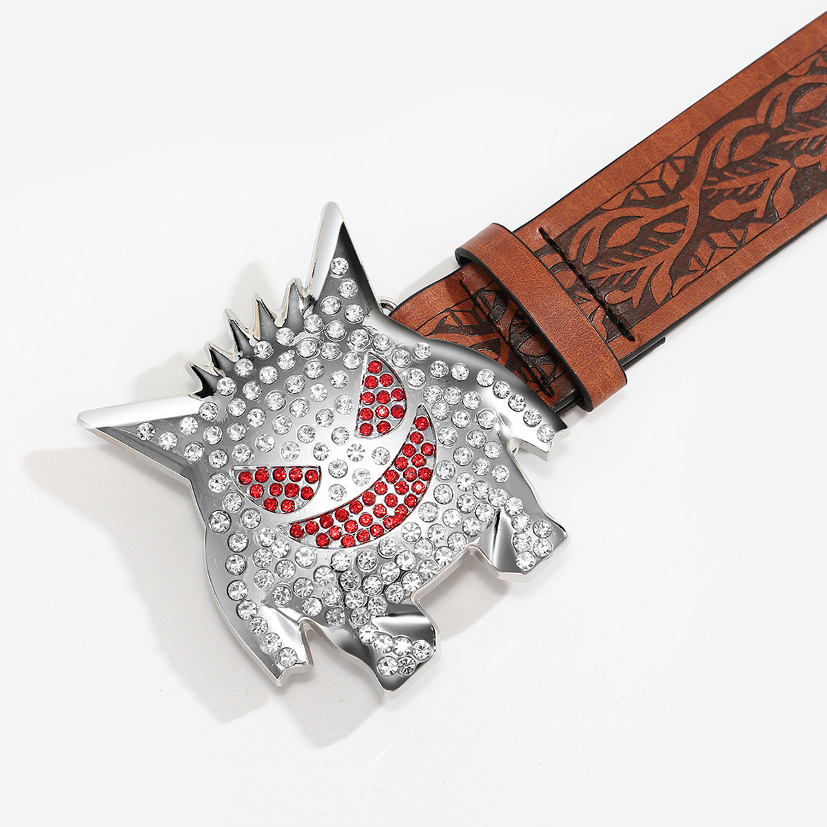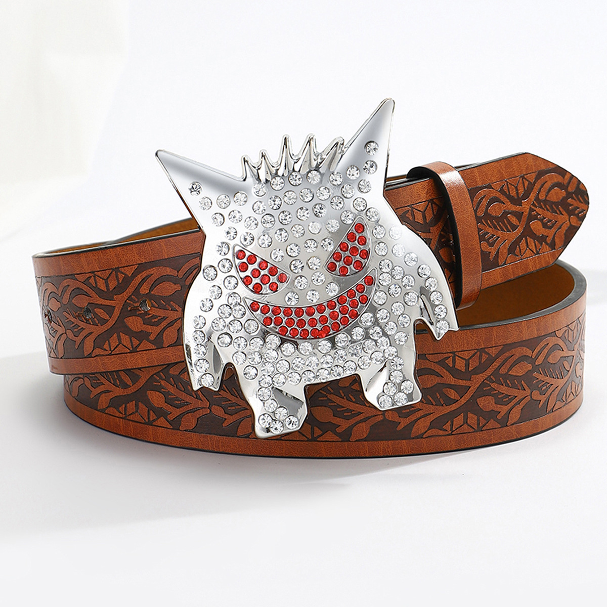 New European and American hip-hop diamond-encrusted elf decorative belt buckle pu printed neutral belt