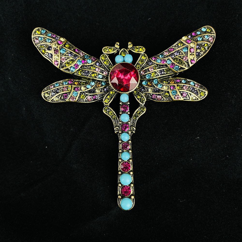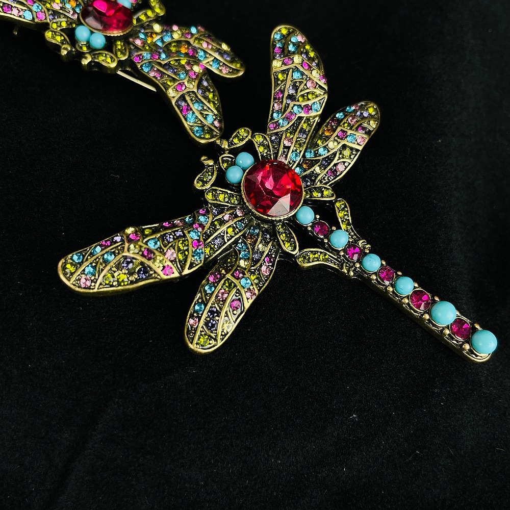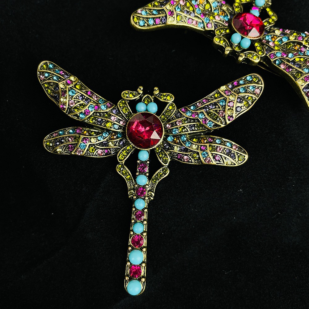 Heidi ancient golden dragonfly brooch medieval heavy industry design insect pin clothing European and American retro full diamond women's clothing