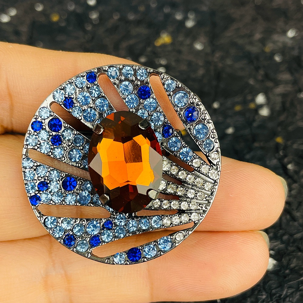 Qingdao Jewelry Maillard Peacock Blue Contrast Brooch Silver Pin Earrings Black Round Female Brown Red Zircon Middle Ancient Pin