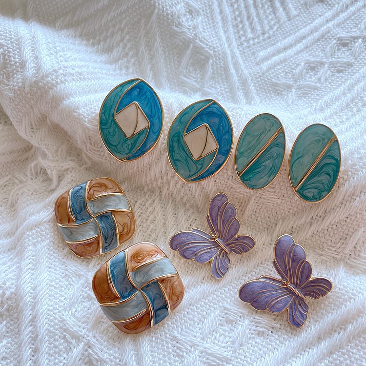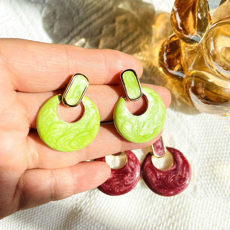Fresh Aocado Green Silver Needle Earrings Drops of Oil Grey Earrings Enamel Glaze Red Earrings Women's Hong Kong Style