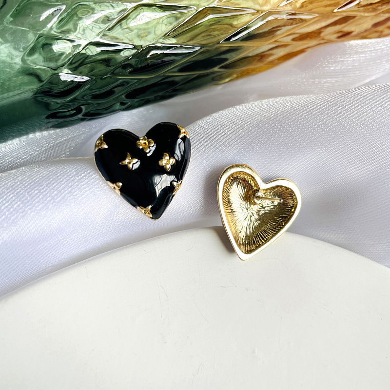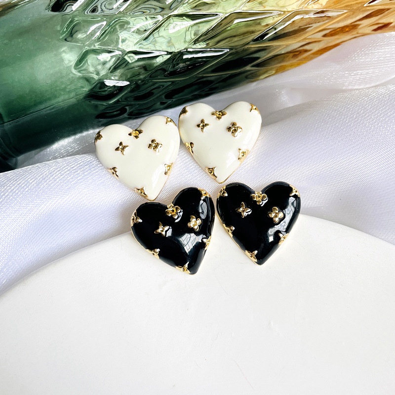 Spring floret love enamel silver pin earrings drop glaze alloy earrings women's classic Mori simple small fresh earrings