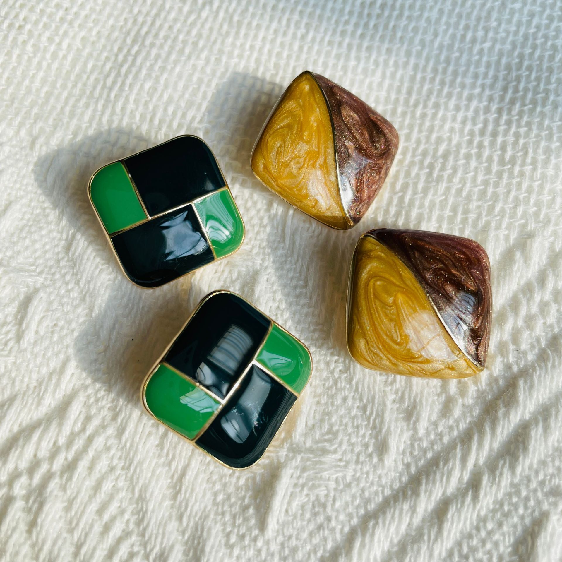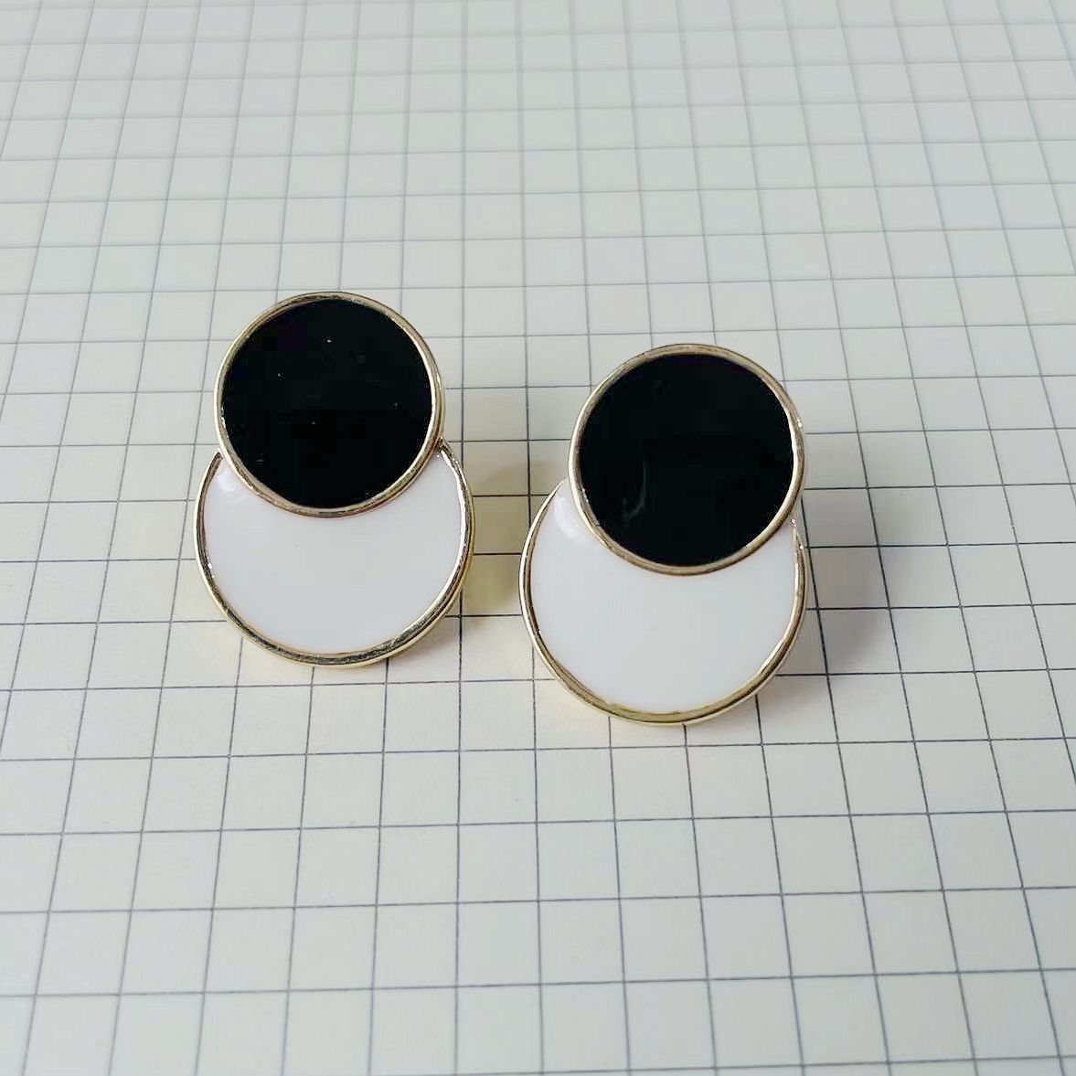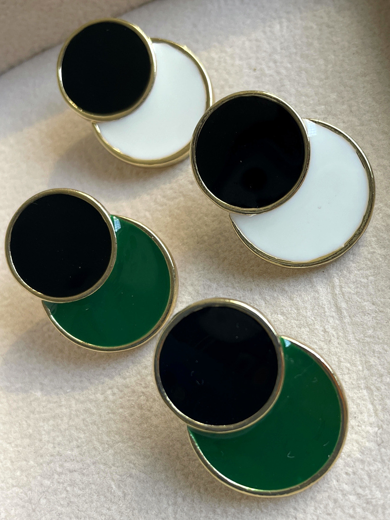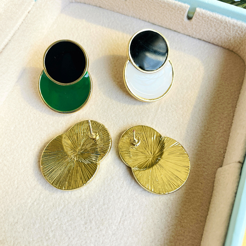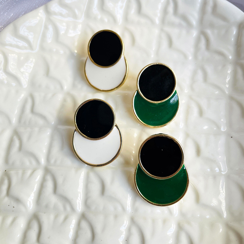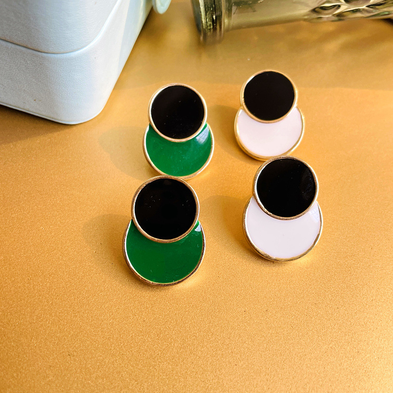 Retro Hong Kong Style Double Color Enamel Color Drop Glaze Silver Pin Earrings Alloy Color-matching Women's European and American Simple Cold Style Earrings