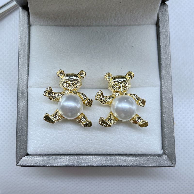 Enamel Oil Dropping Silver Needle Earrings Yinhe Ji Alloy Gem Bear Embrace Pearl Earrings Mori Series Women's Earrings