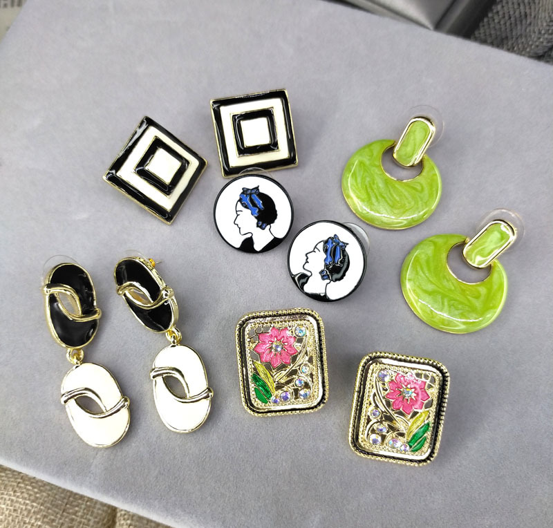 Small fresh flower earrings summer earrings enamel oil drop new fashion temperament earrings avocado green earrings