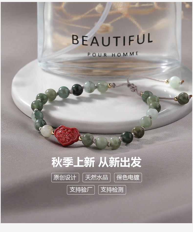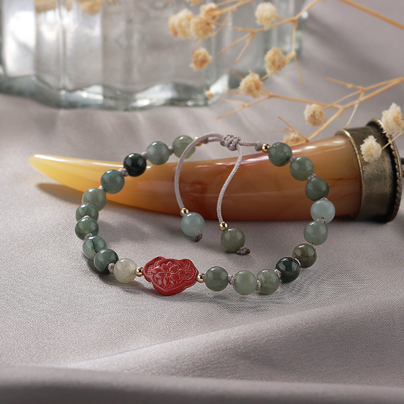 Badu Creative Woven Hand Rope Women's New Jade Jade Beads Cinnabar Bracelet Lotus Cinnabar Bracelet in stock Wholesale